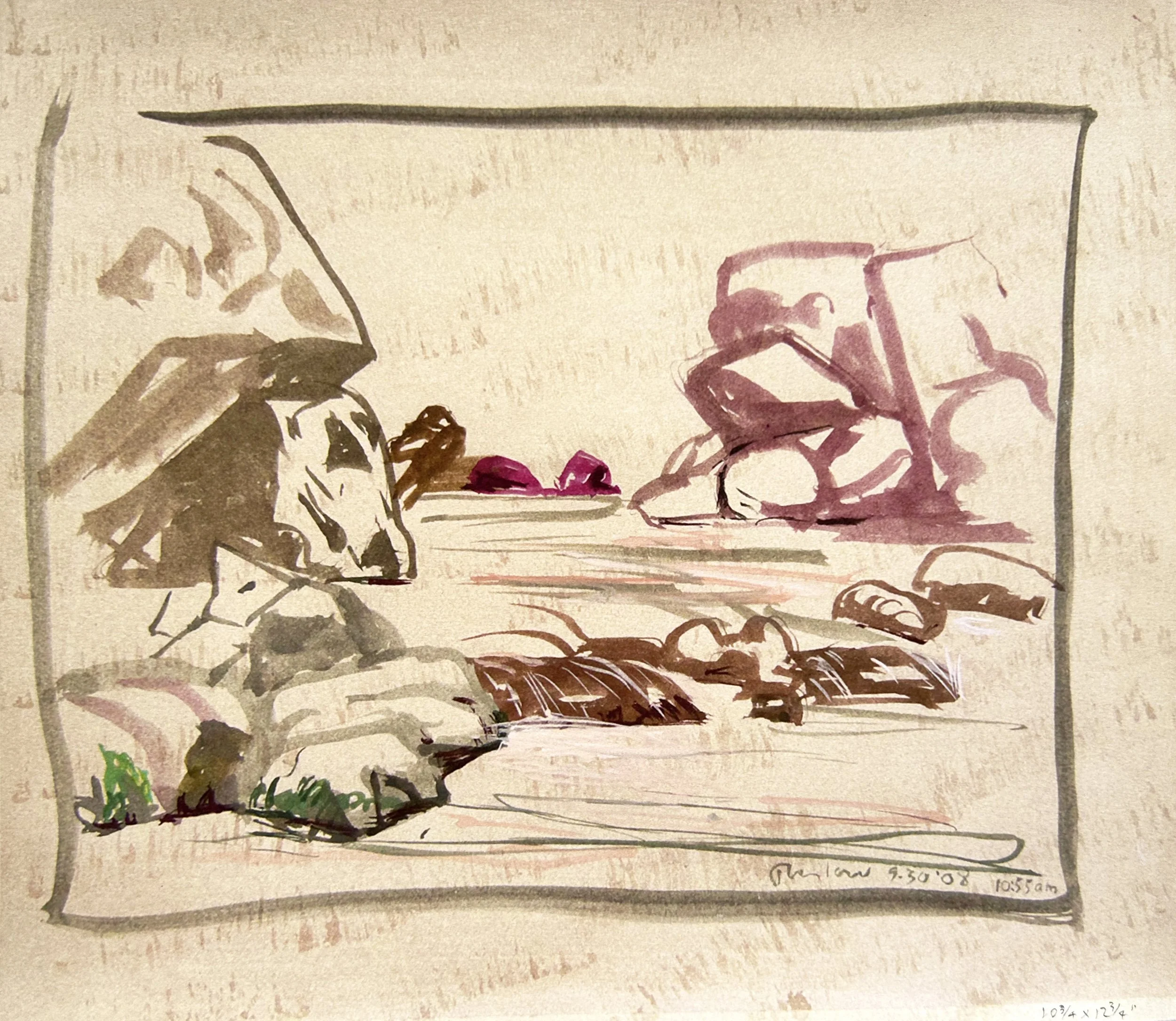 3:07 PM: yesterday i came across a matisse landscape i loved, so i decided to break up the tiring process of studio cleanup & reorg by making a small study of it in oil. as usually happens when you look carefully the master and try to replicate his marks, colors, composition… it’s a wonderful learning experience.
