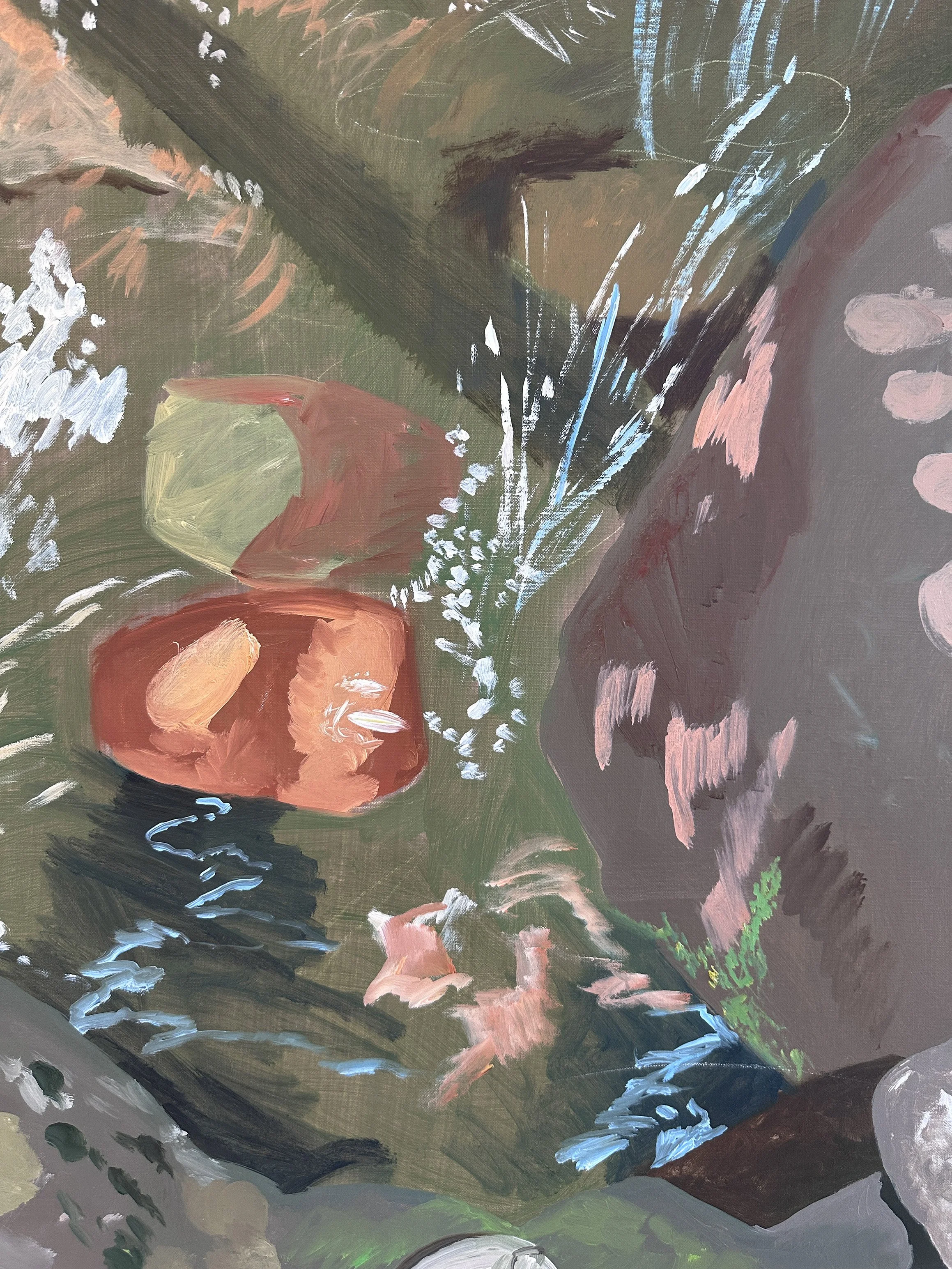 DETAIL of a 47x56” creek painting from 2000, in oil on linen, hanging in our living room