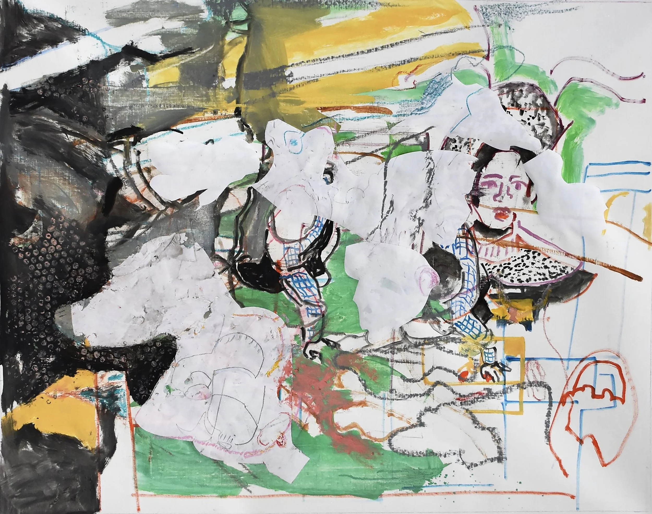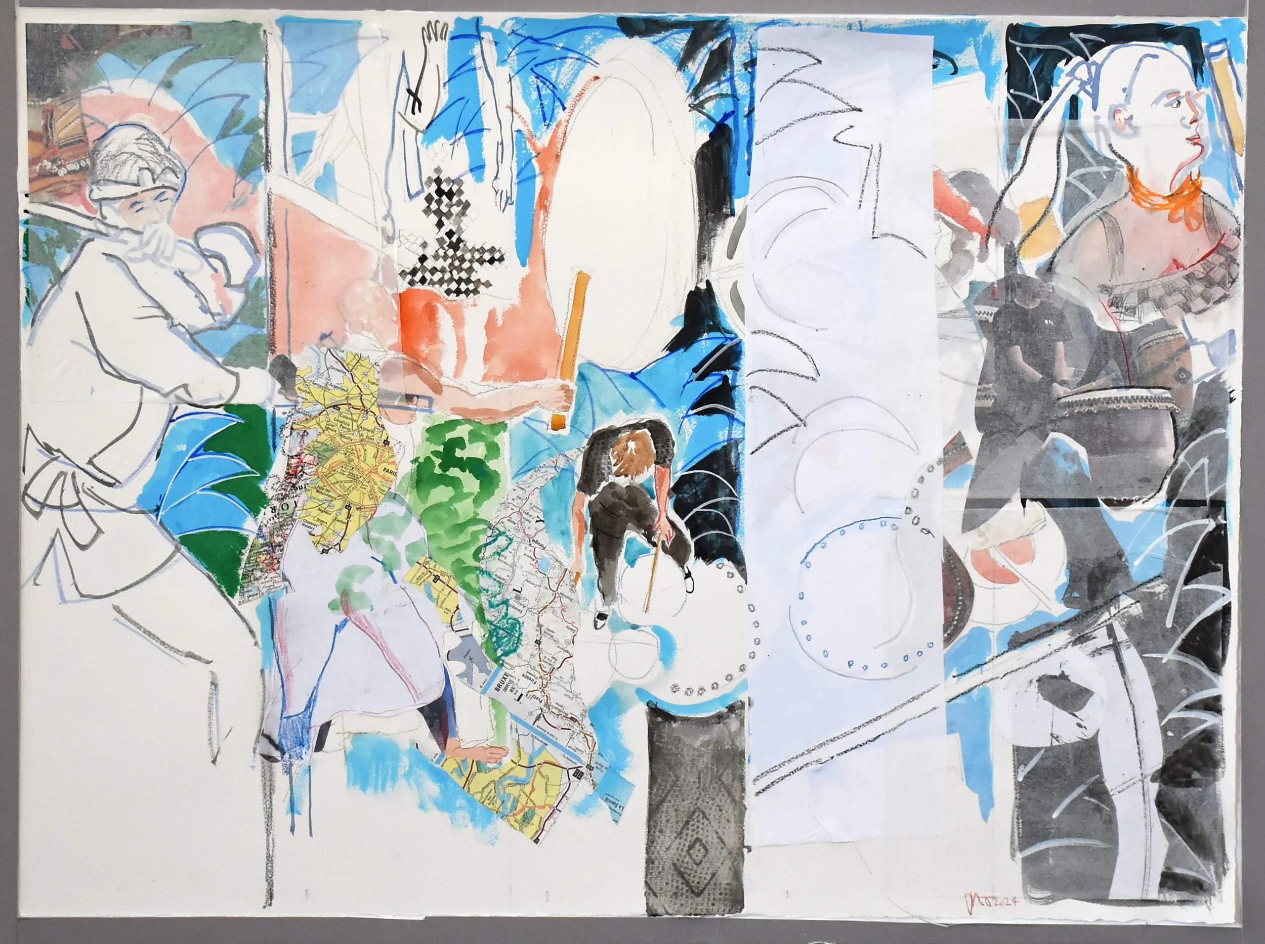 2:46 PM: today i started dancing creek, on one of the 3 24x20” extra fine linen cnavases i cut from the roll 2 days ago. this dancing figure with his arms passionately outstretched has been appearing in recent work. i captured the image from our tv screen, and for me he epitomizes the joy of moving ones body to music. there are no national boundaries here; moving to music is universal.