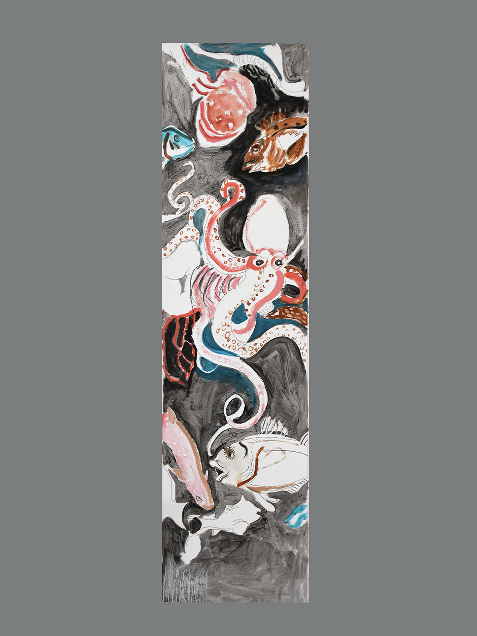 2:56 PM: today i started a new 38x10” painting on portrait linen, titled swimming. it’s a study of a portion of a pompeian fresco which can be found in the archeological museum of naples. as yet, the sea creatures, all of which were favorite food of the ancient romans, remain without color.