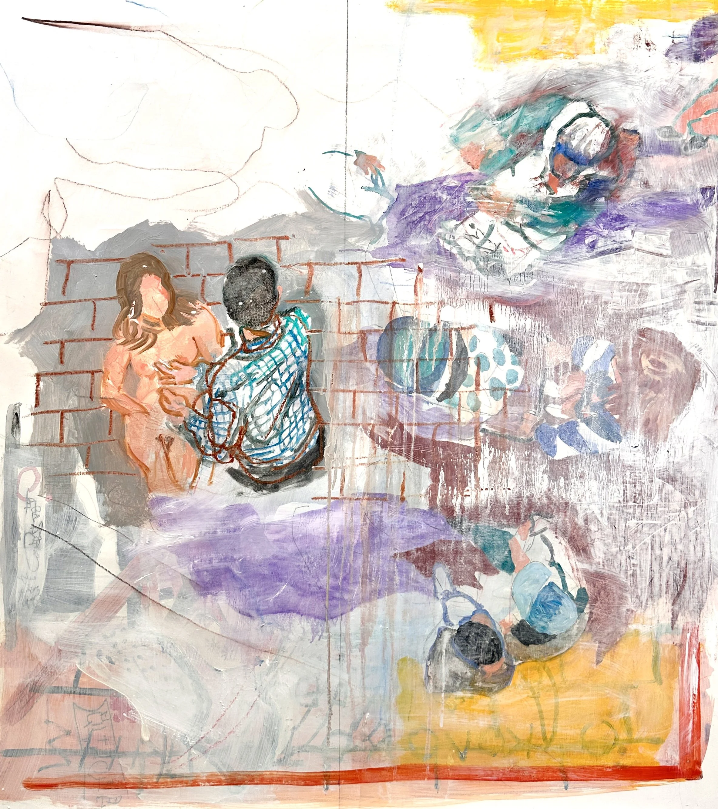 ON THE RIGHT: drawing in colored pencil for 3/26/25 ano kato, 32x22”