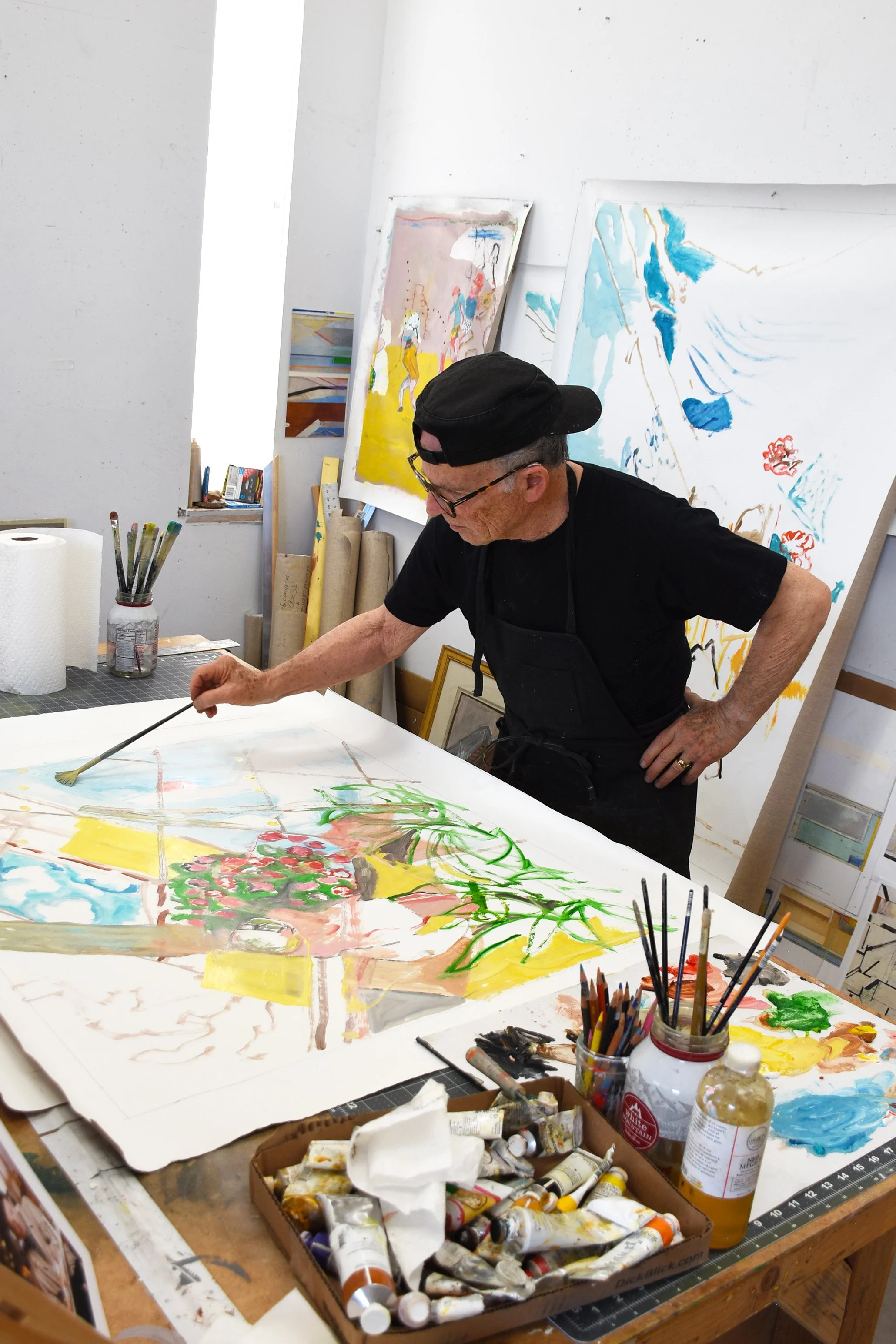 12:11 PM: this morning i made sometweaks to watercolor/collage 108, which was created a few months ago. there’s a collaged map in the center of the composition which was too dominant, so i collaged over it and added some marks in colored pencil, with the desired result that one’s eye doesn’t get stuck on that map. i think it’s vastly improved, and consider it one of my stronger pieces from that period.