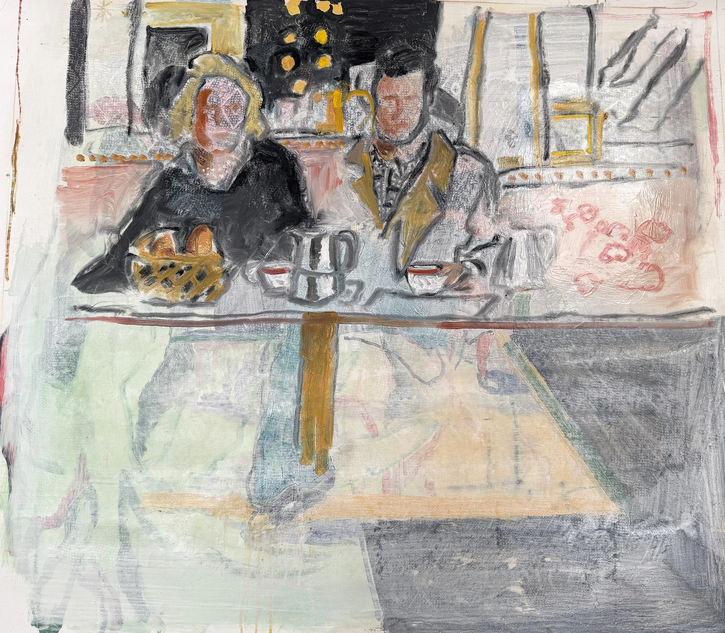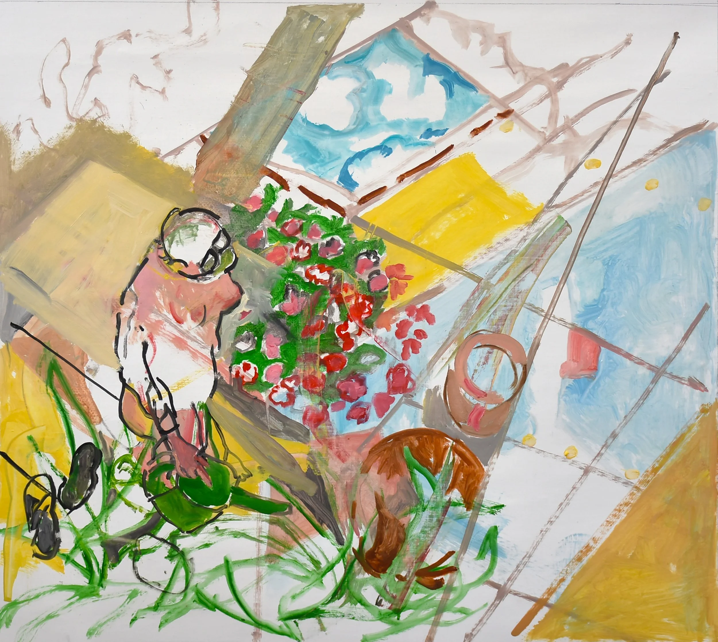 3:03 PM: it started last night. i looked at what i had done yesterday, attempting to recreate a 1979 painting, a 1979 spirit, and i knew it had to go the way of other paintings i’ve started and then painted over. that canvas was unwieldy anyway, unstretched as it was. trying to get it from my painting table to the wall was a struggle.
