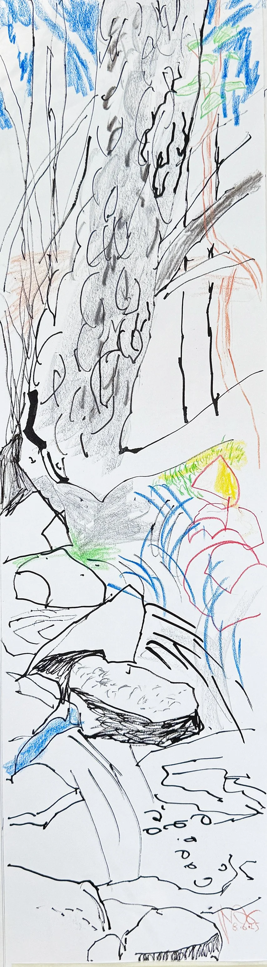 right now i’m thinking i won’t do any more work, take it over to the house and see how it holds up in the company of the other recent work. i’m feeling that i’m just now discovering my own version of abstract realism that coincides with the nature of my personality as much as with my mark making.