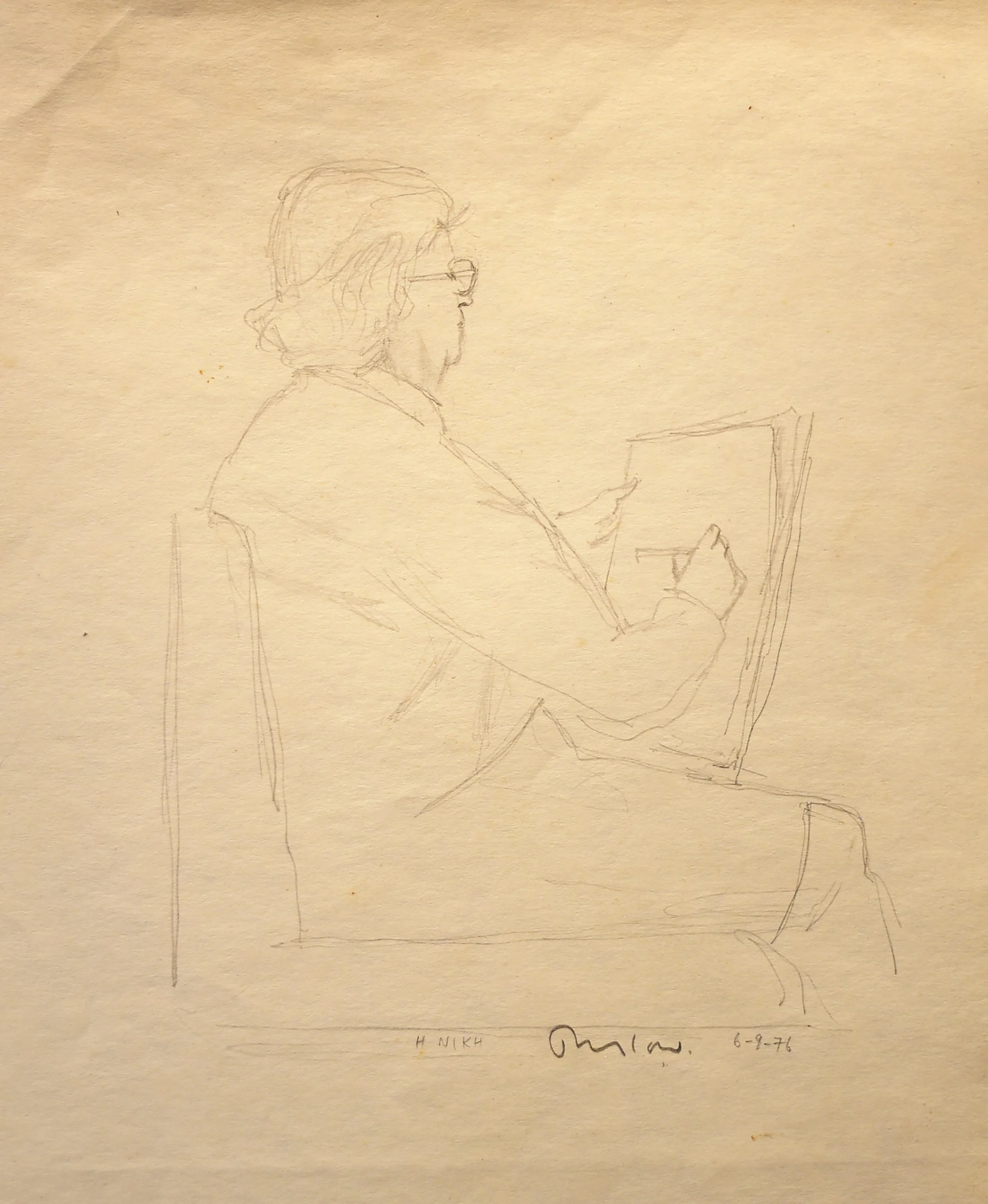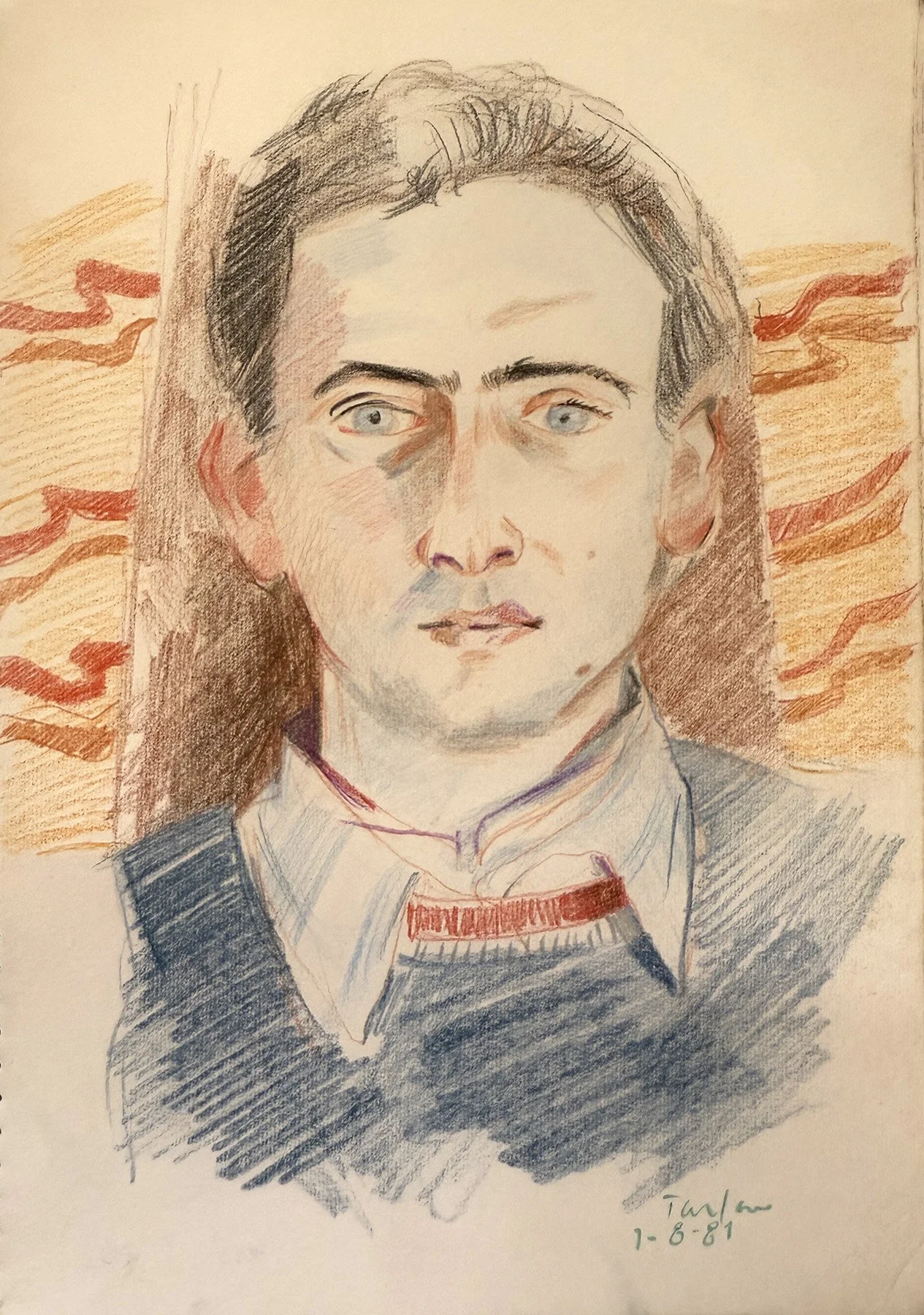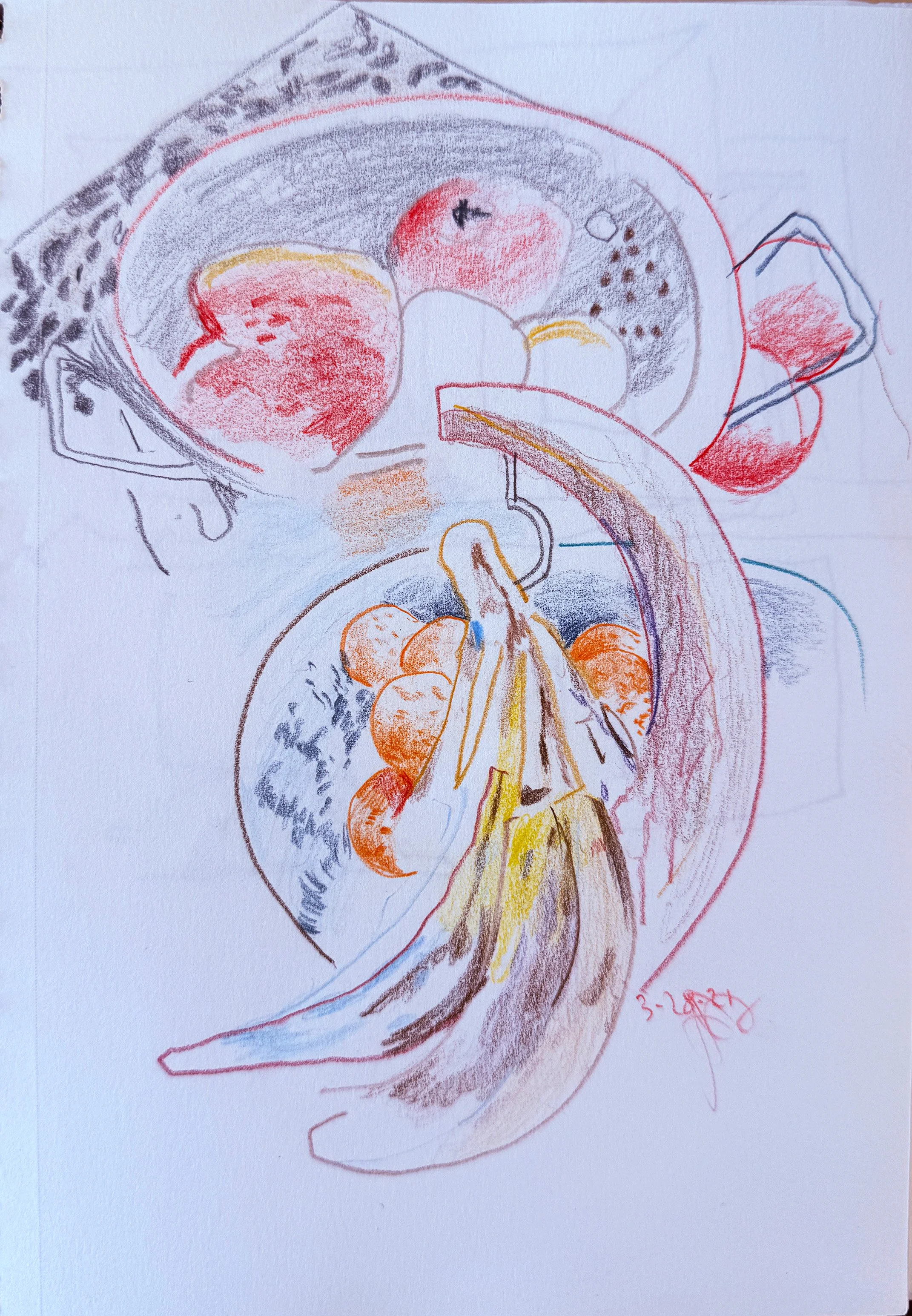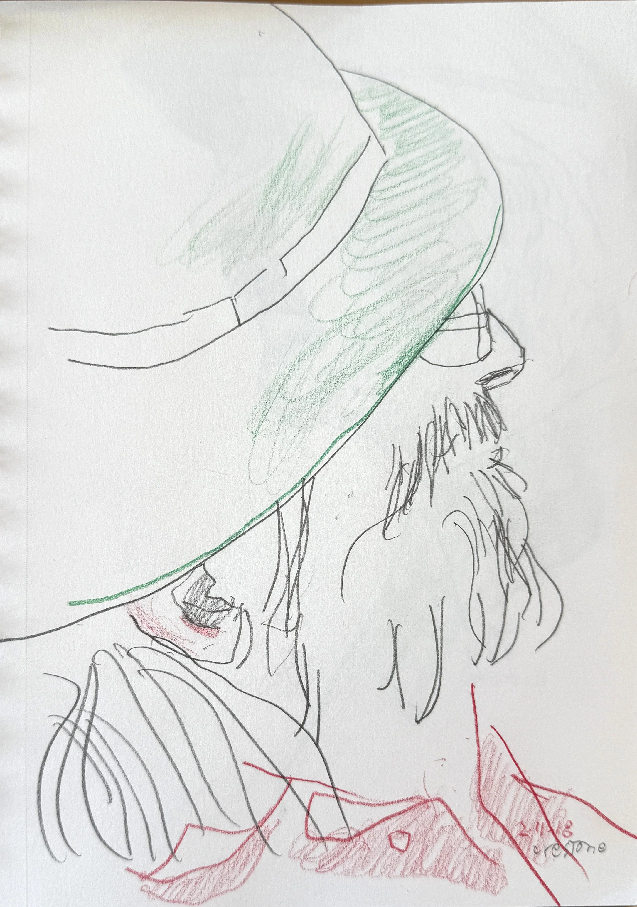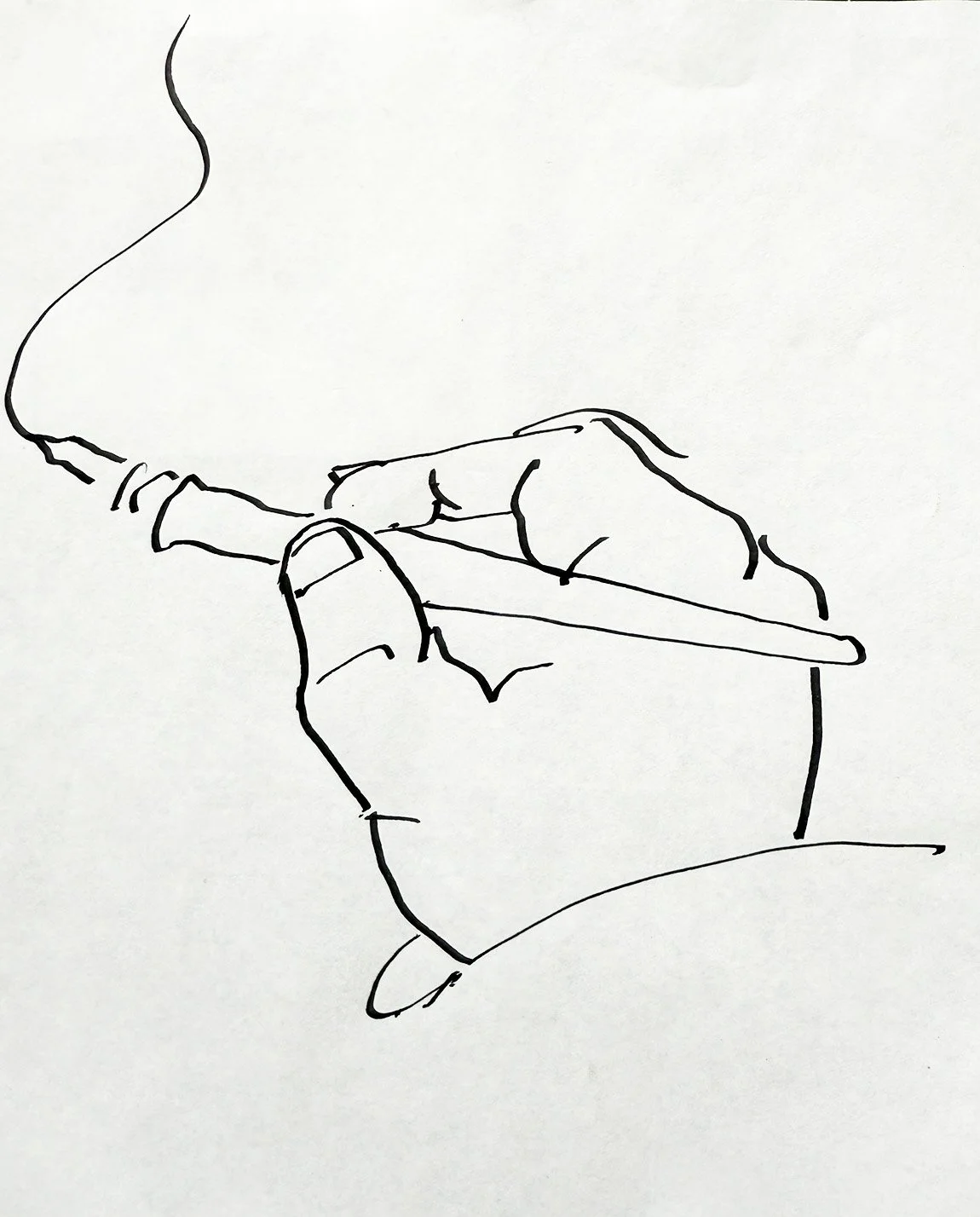 so this time when it reached that point, i was inspired to take a piece of 8.5x11 paper and make a drawing of one of my favorite images. it’s one that has appeared in many of my recent works, of a couple seen from behind and slightly above. she’s got her arm around him, with her hand on his neck and his arms are folded behind him.