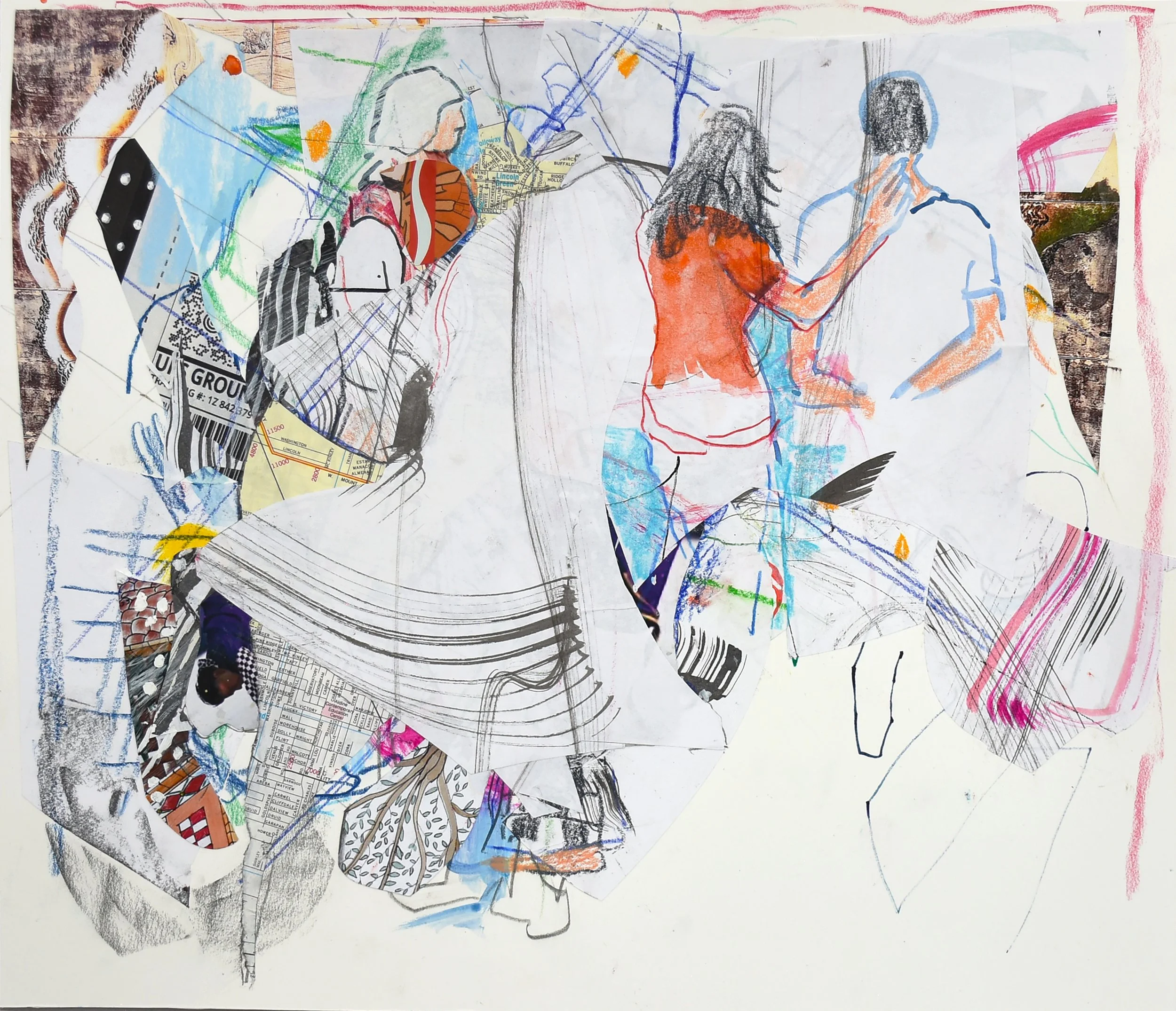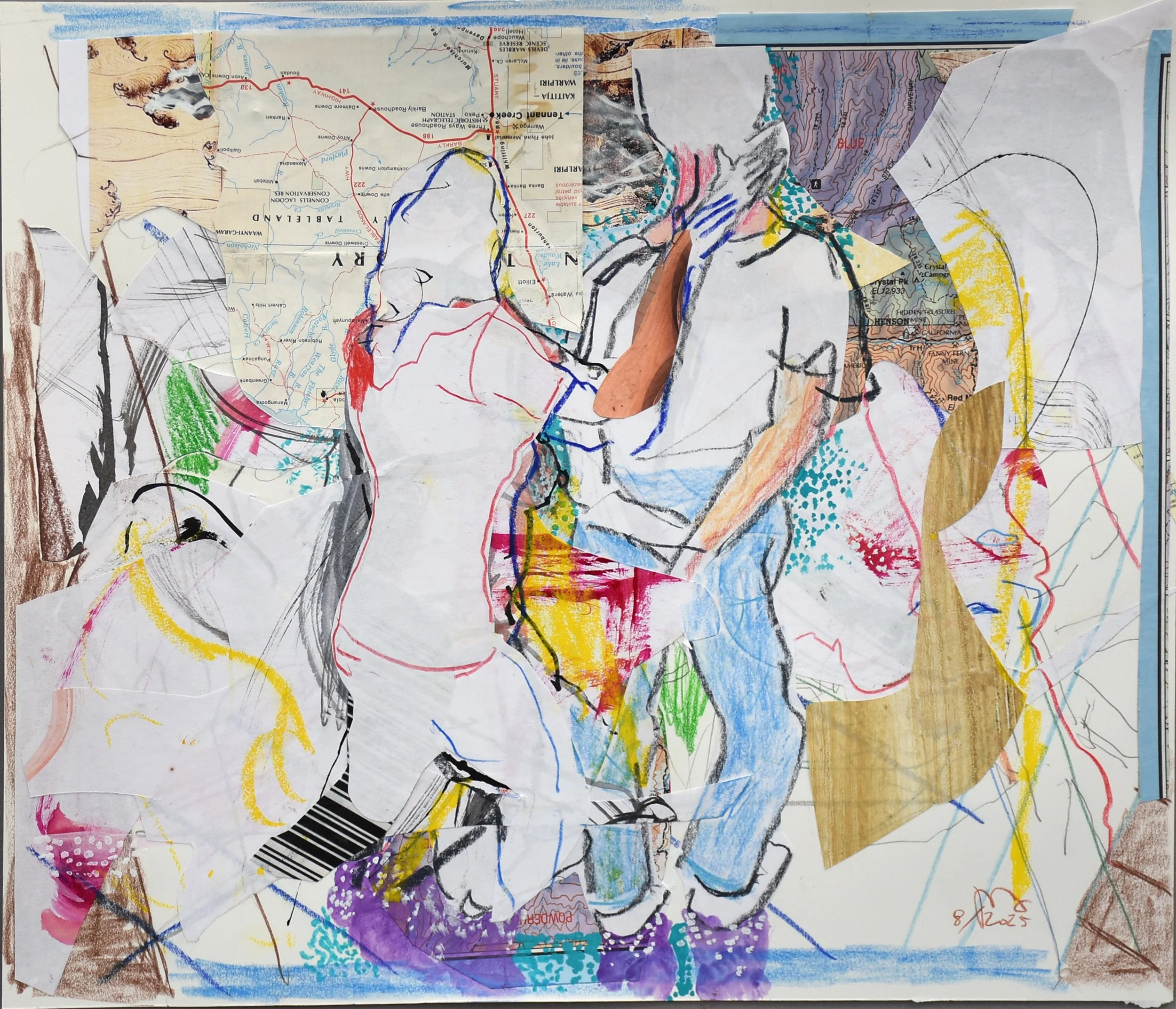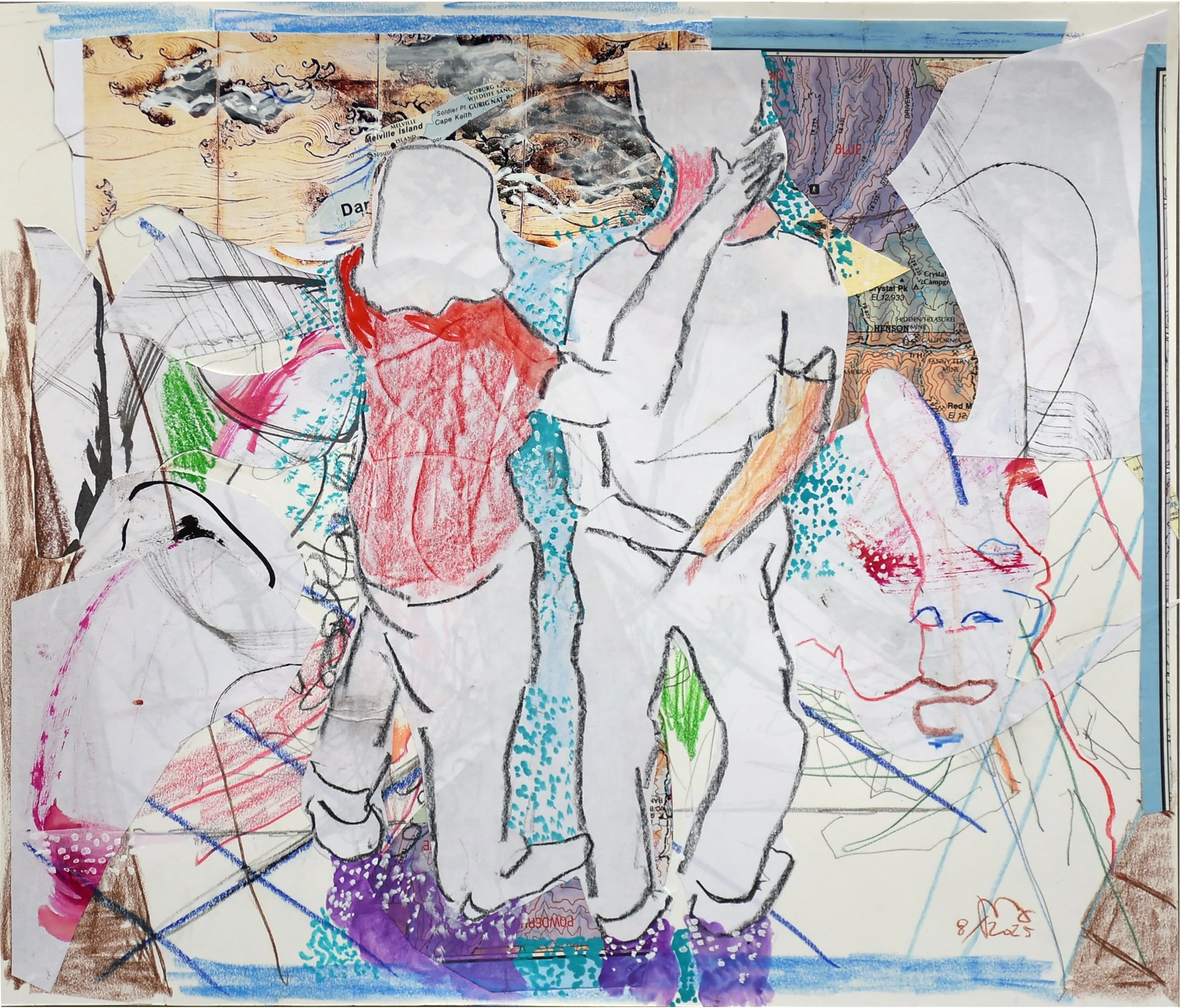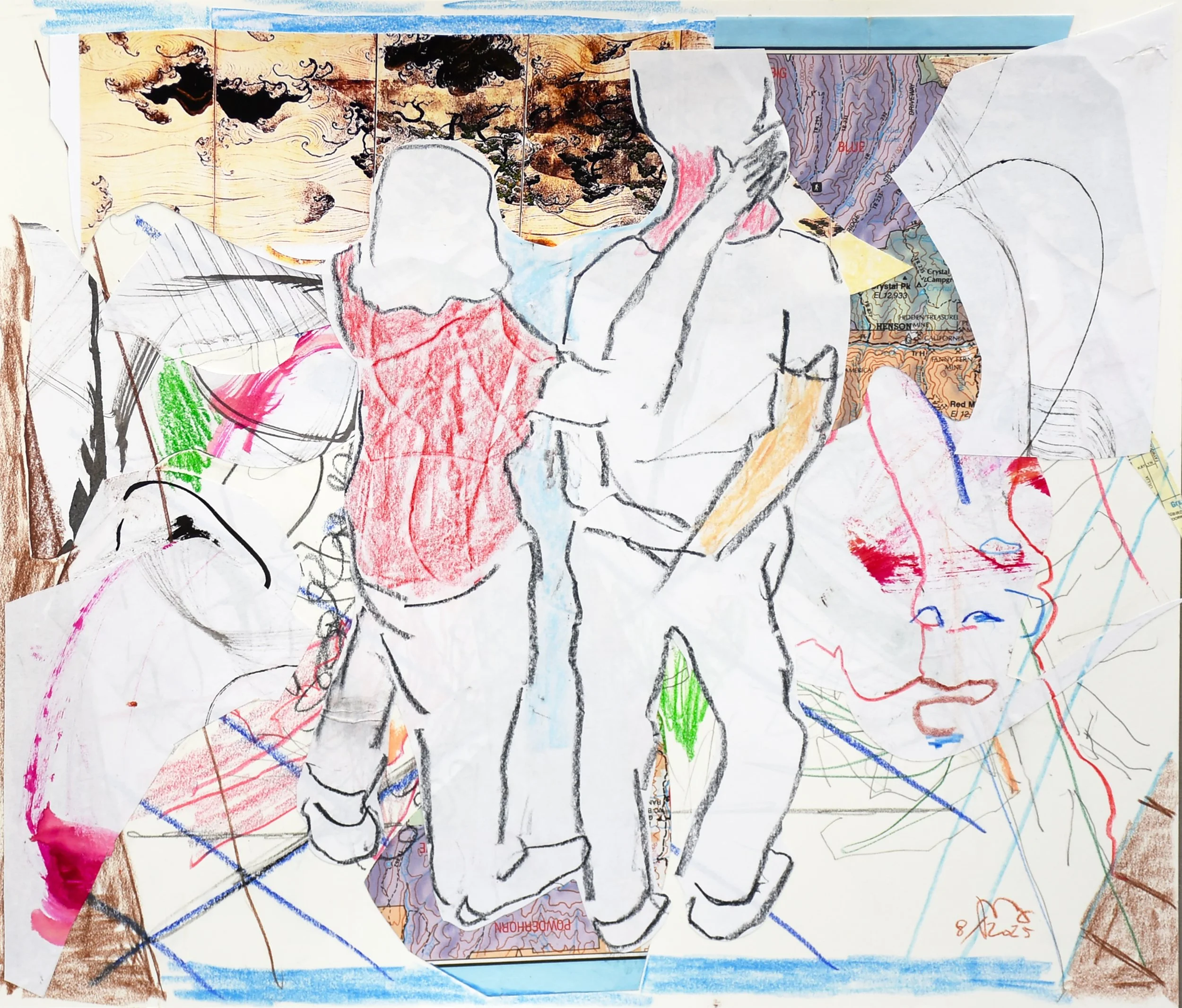 then i cut out the colored pencil drawing, leaving some white space around the two figures, and collaged it to the center of the piece. i was kind of surprised at how beautifully it integrated and looks like the whole collage was made for this couple!