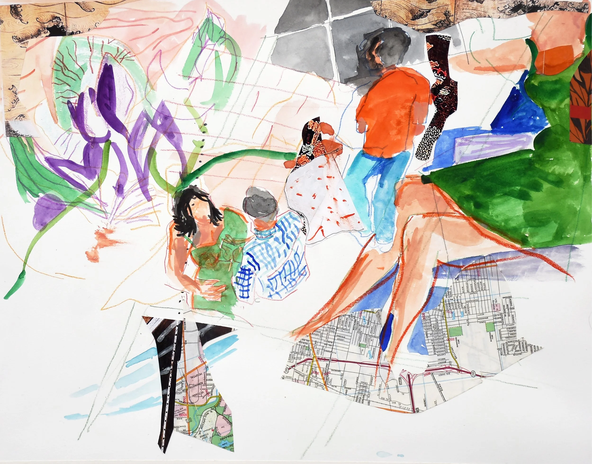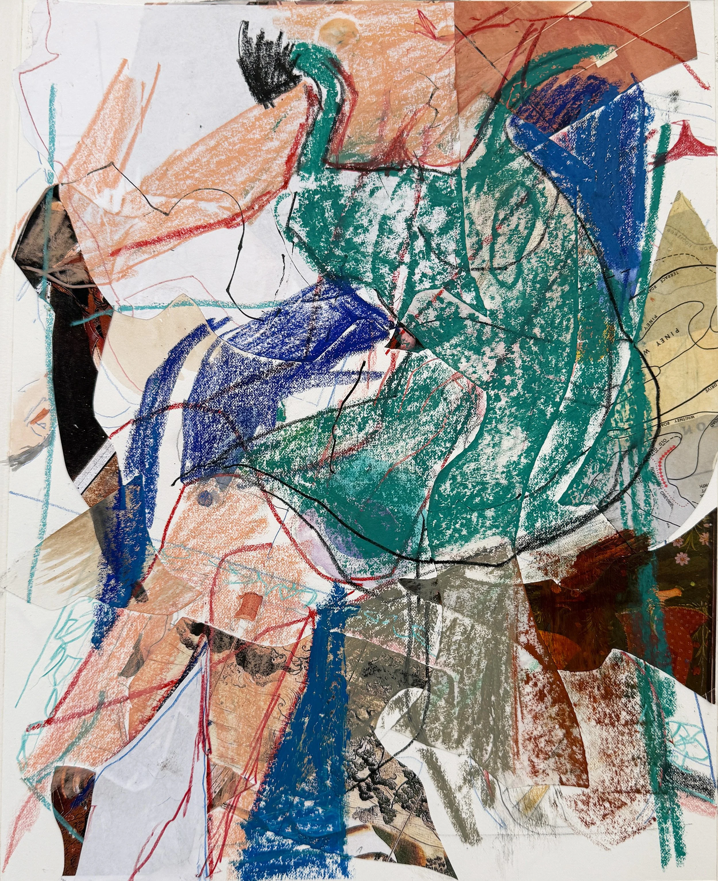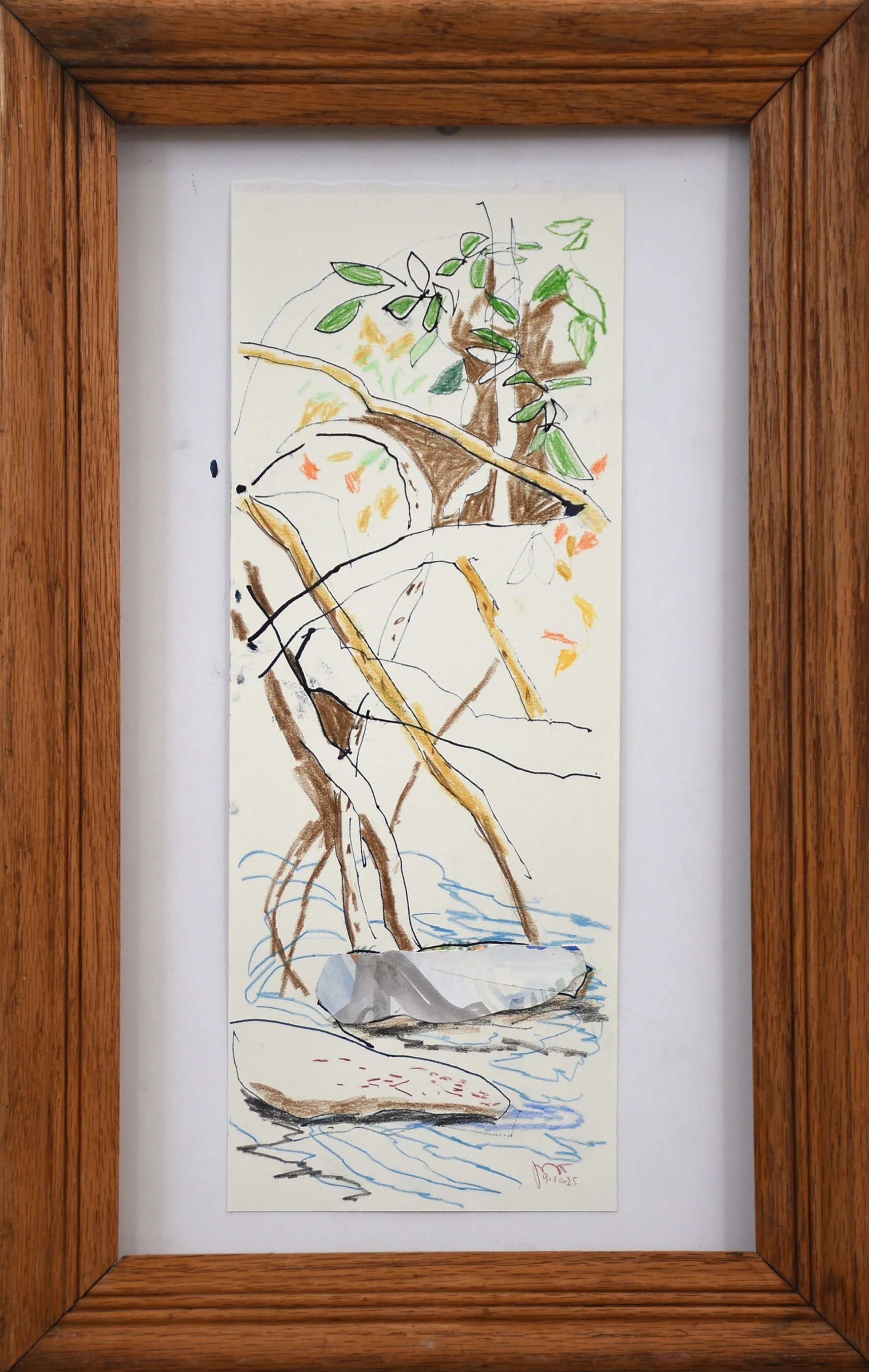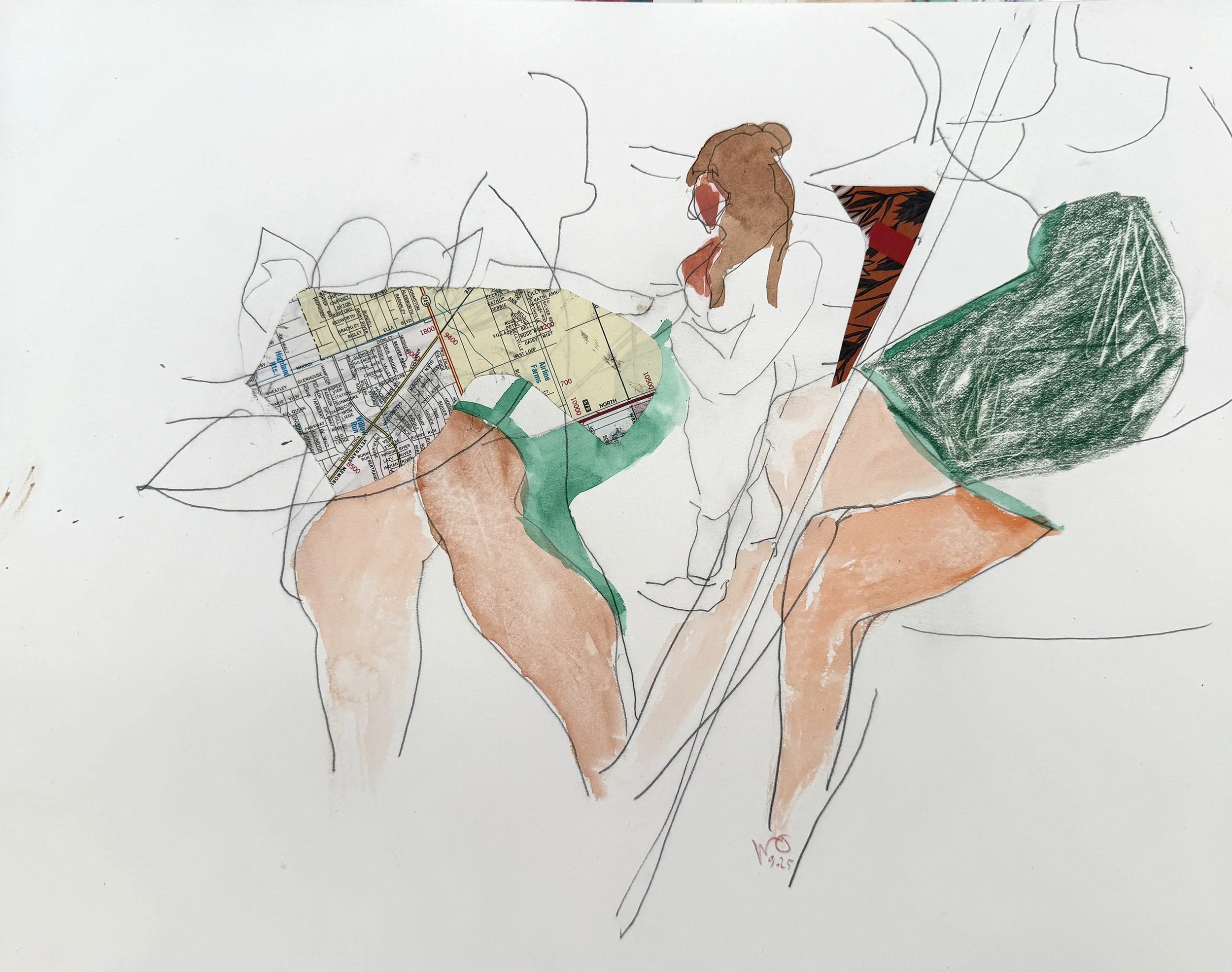 9/13/25 colored pencil/collage, 11.5x14.4” colored pencil & collage on bristol paper, as she looked at the end of the day