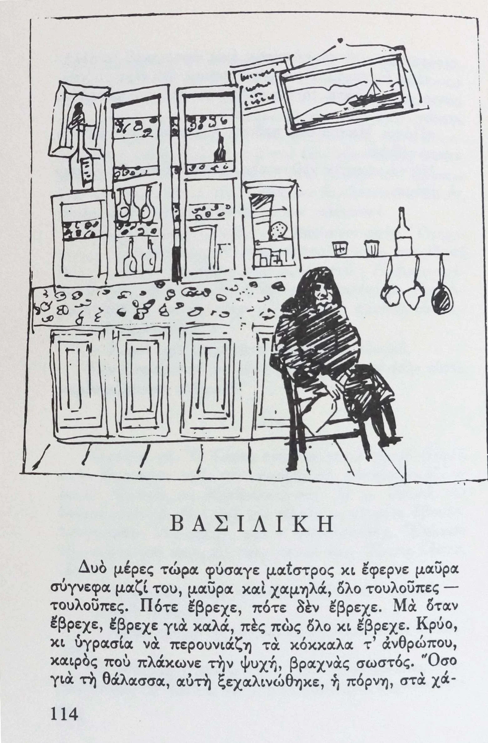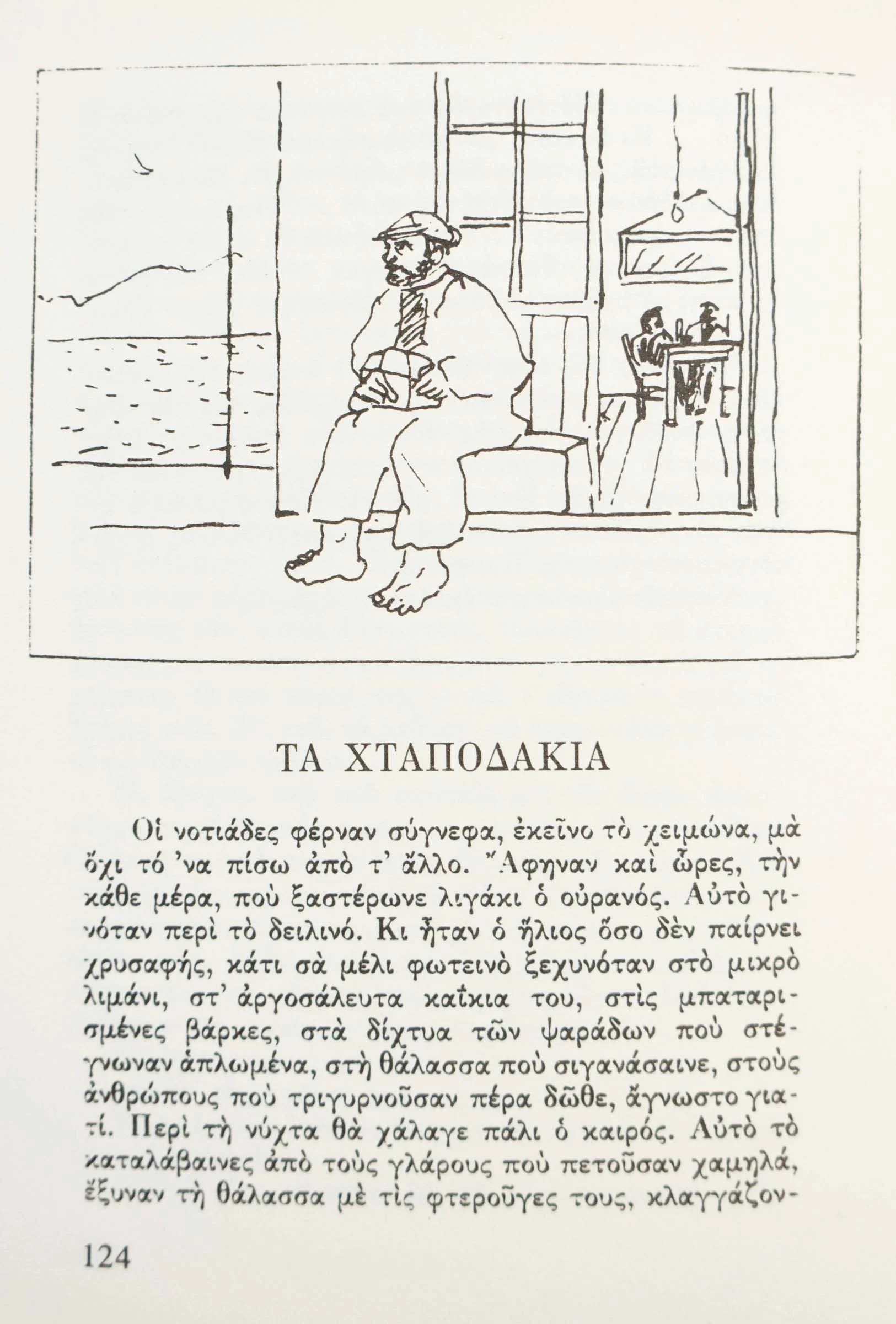 one day my then mother-in-law niki karagatsi asked me to create the cover art and illustrations for "to nero tis vrochis," a book of short stories by her late husband, best selling greek author m. karagatsis. the results are shown below.