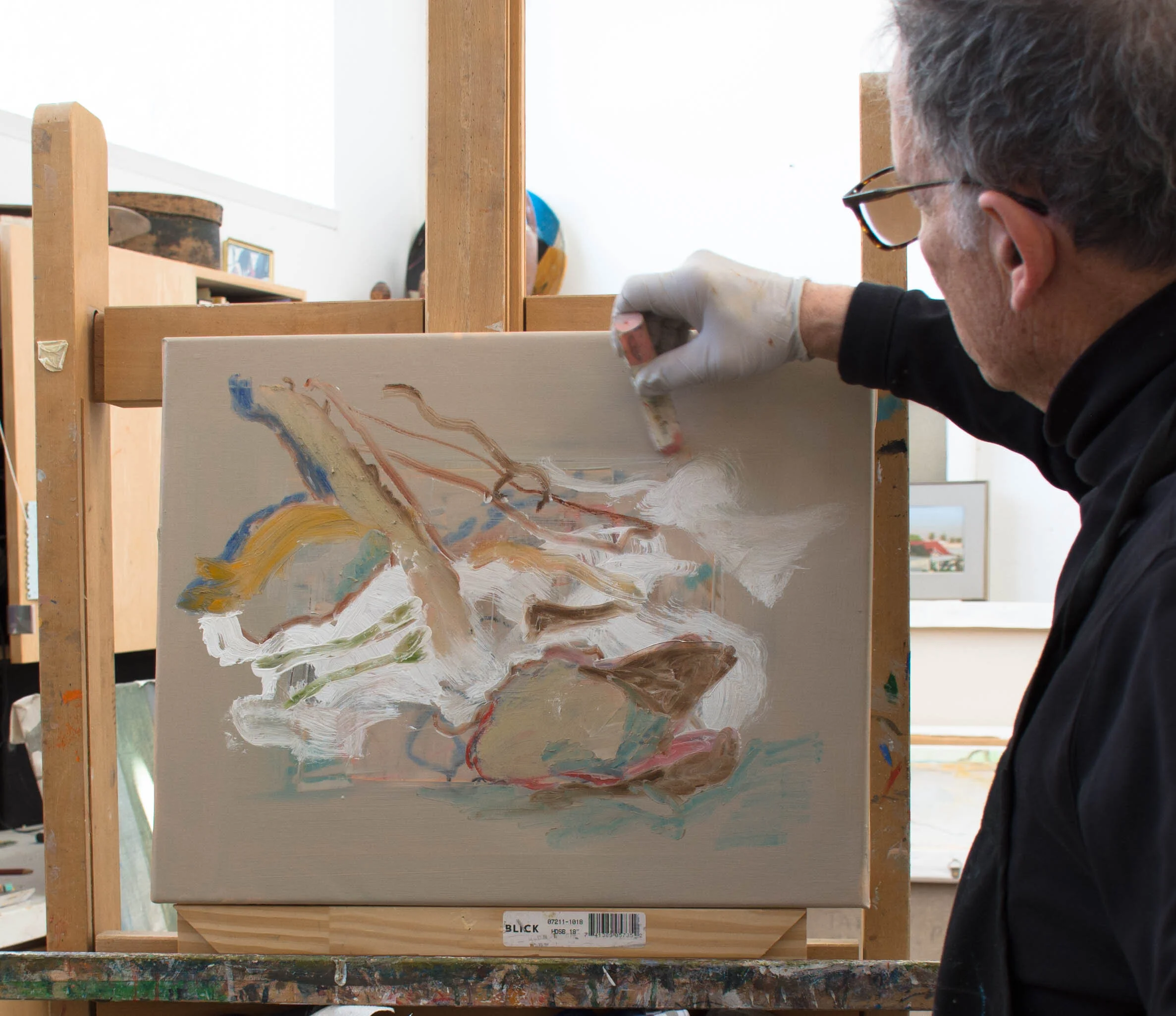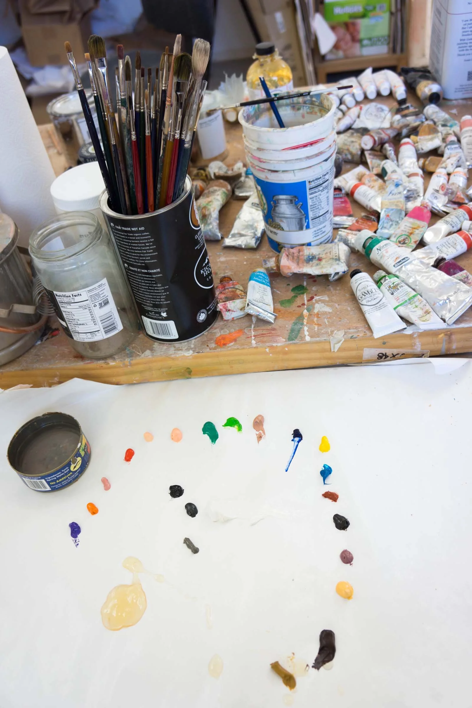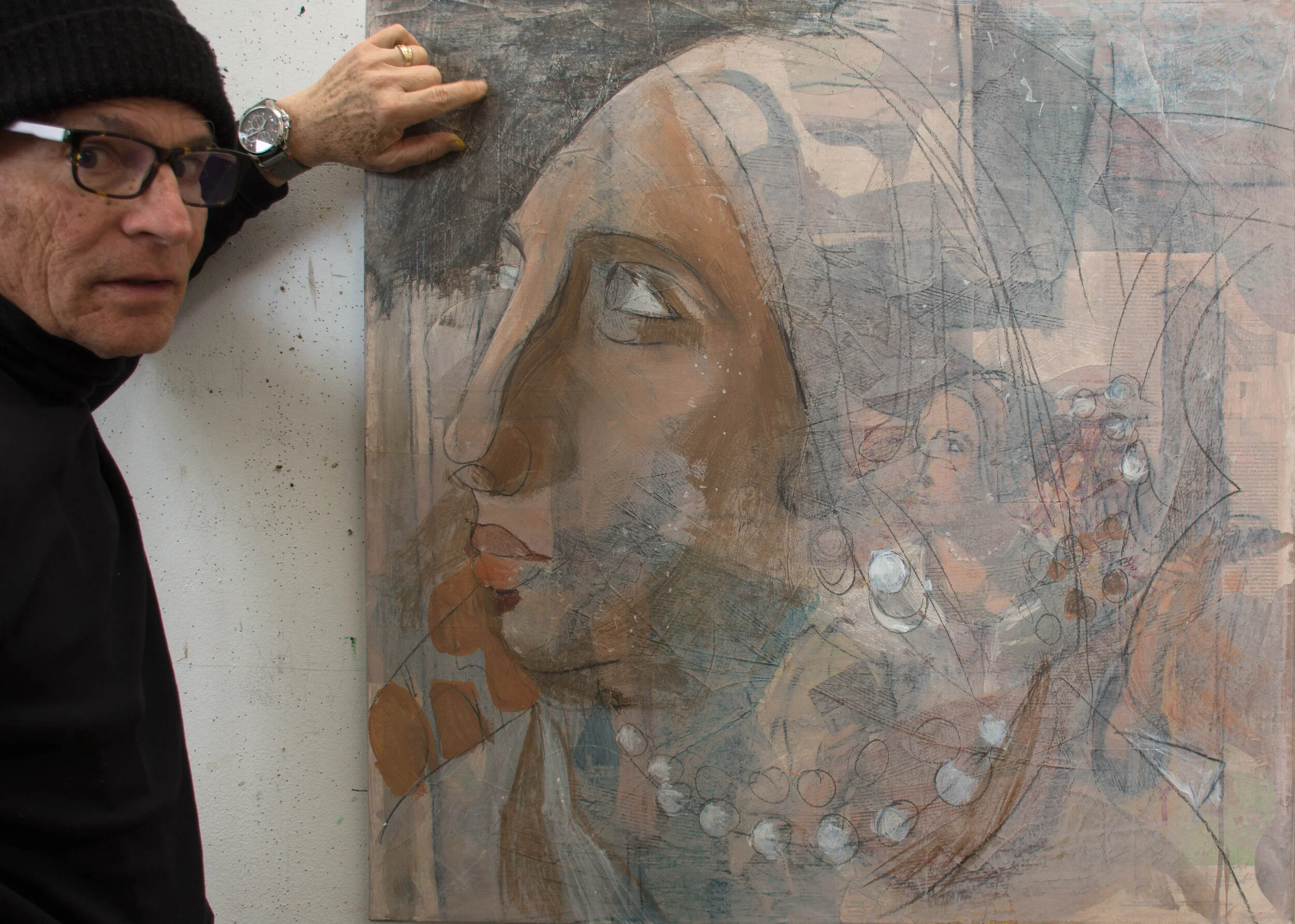 BELOW is one of the pages i printed out for attendees, illustrating the evolution of one of my gaze series paintings and how the process of making one painting over another until i’m satisfied with the result, is visible in the final painting.