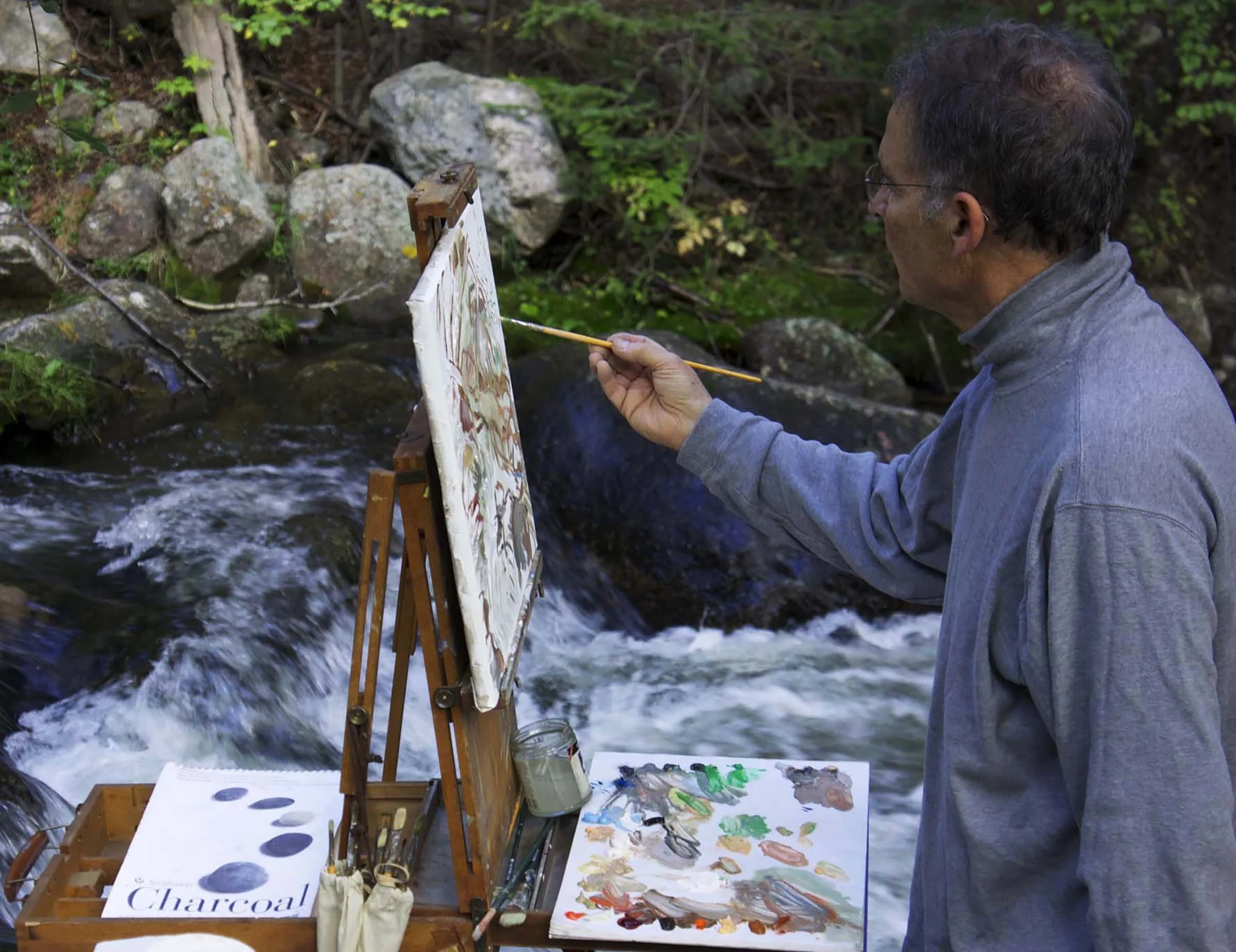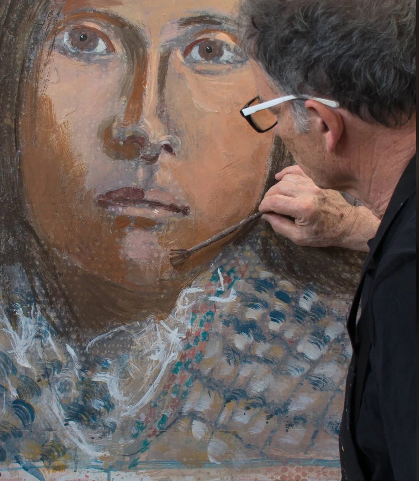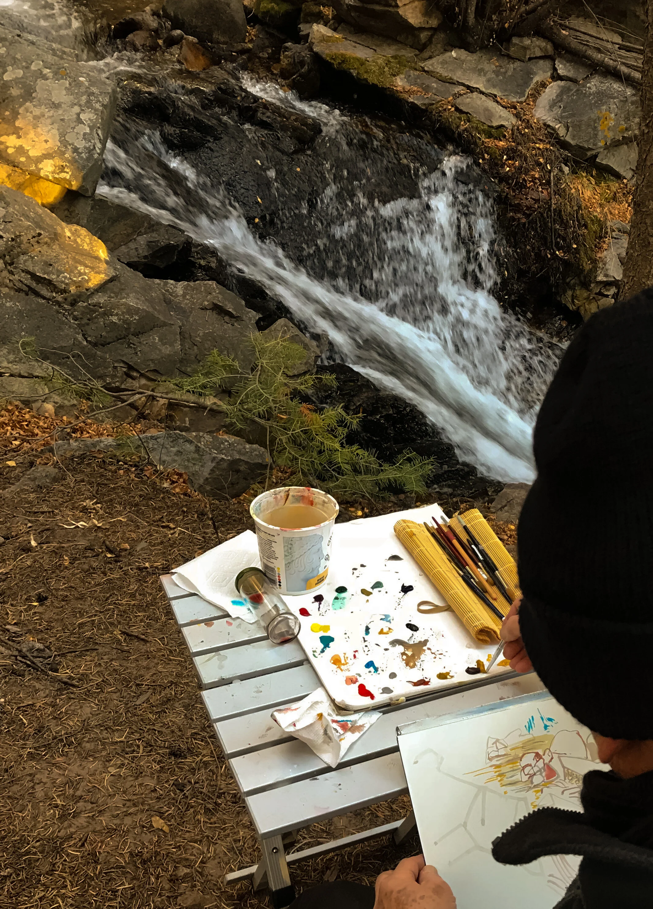BELOW is one of the pages i printed out for attendees, illustrating the evolution of one of my gaze series paintings and how the process of making one painting over another until i’m satisfied with the result, is visible in the final painting.