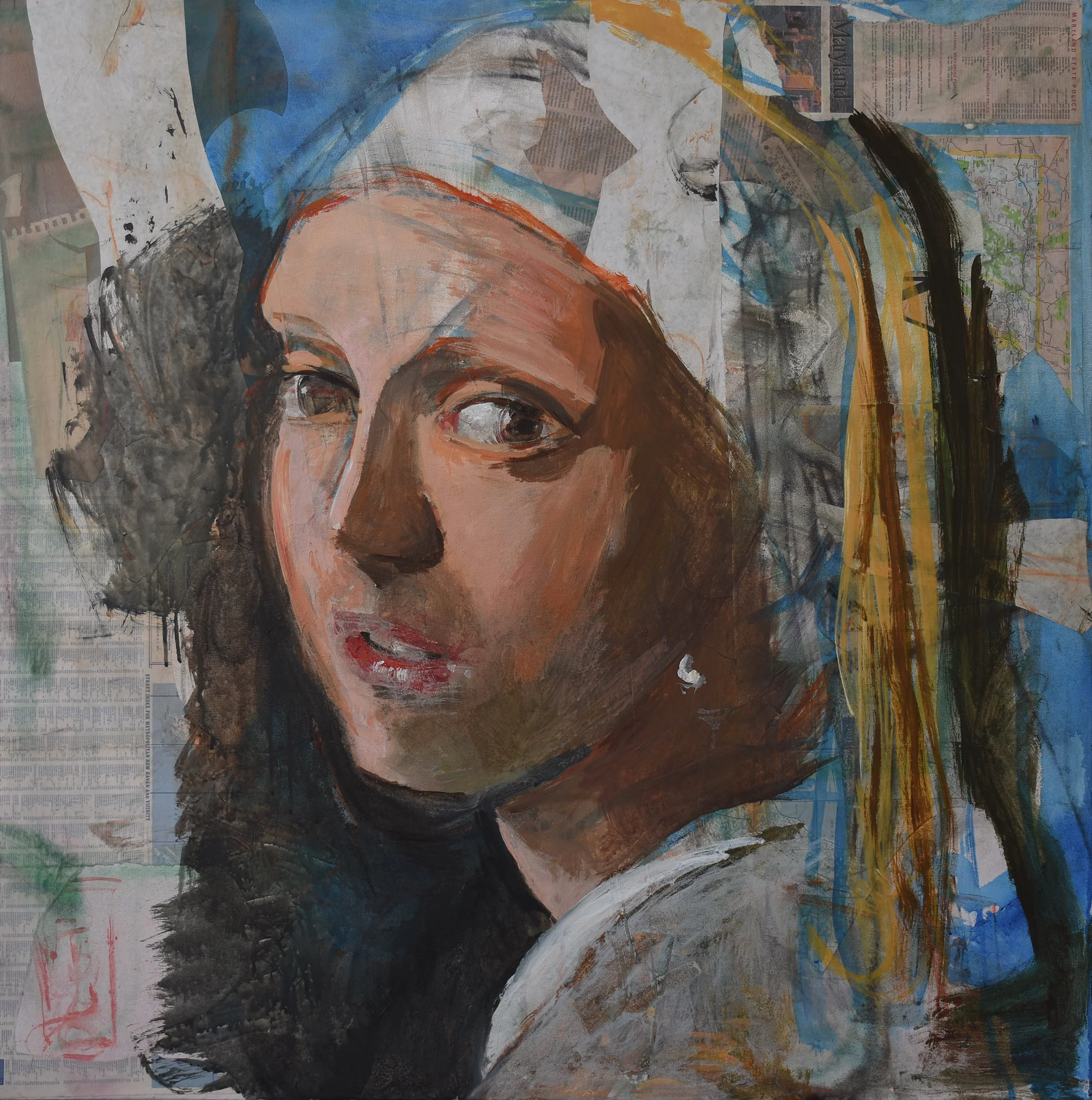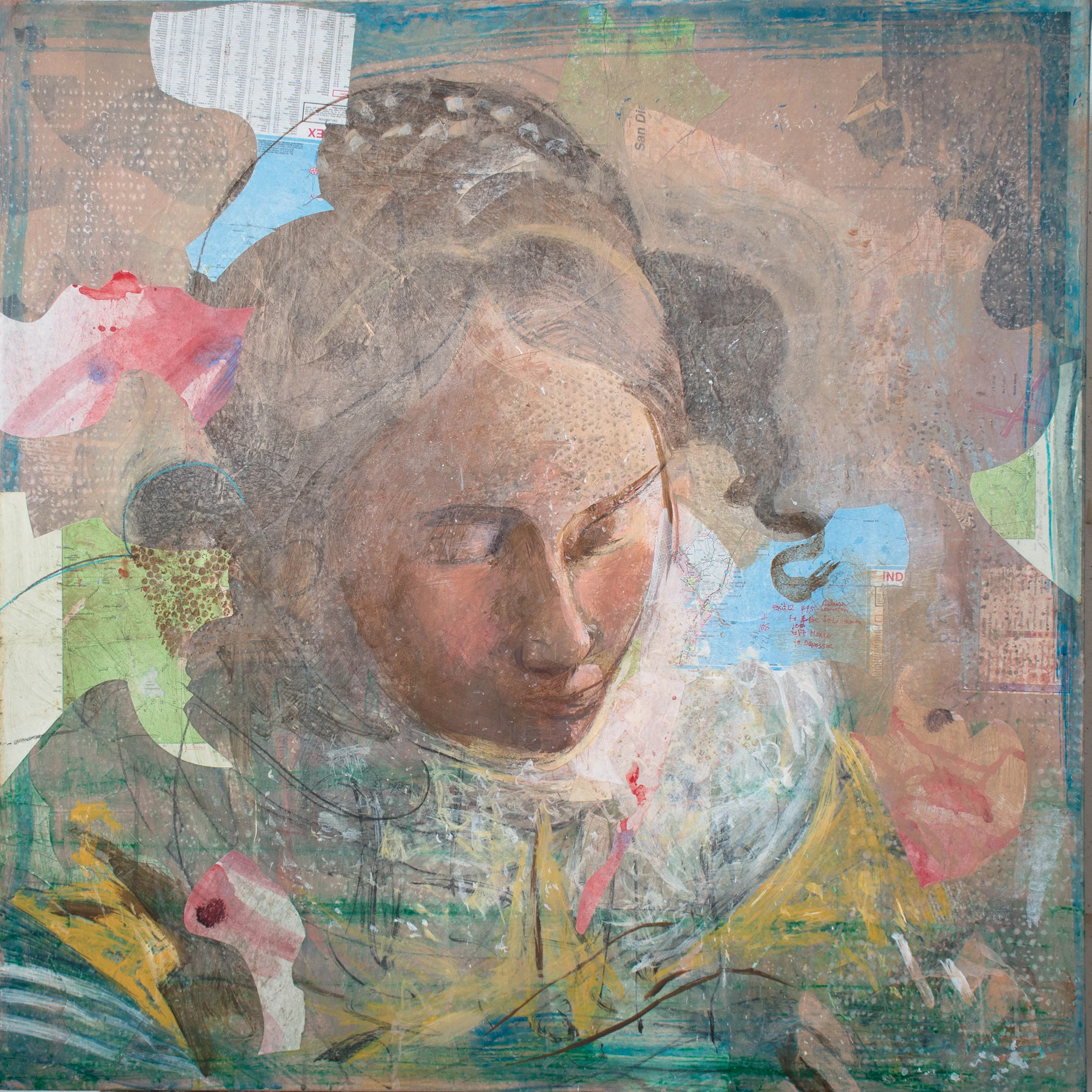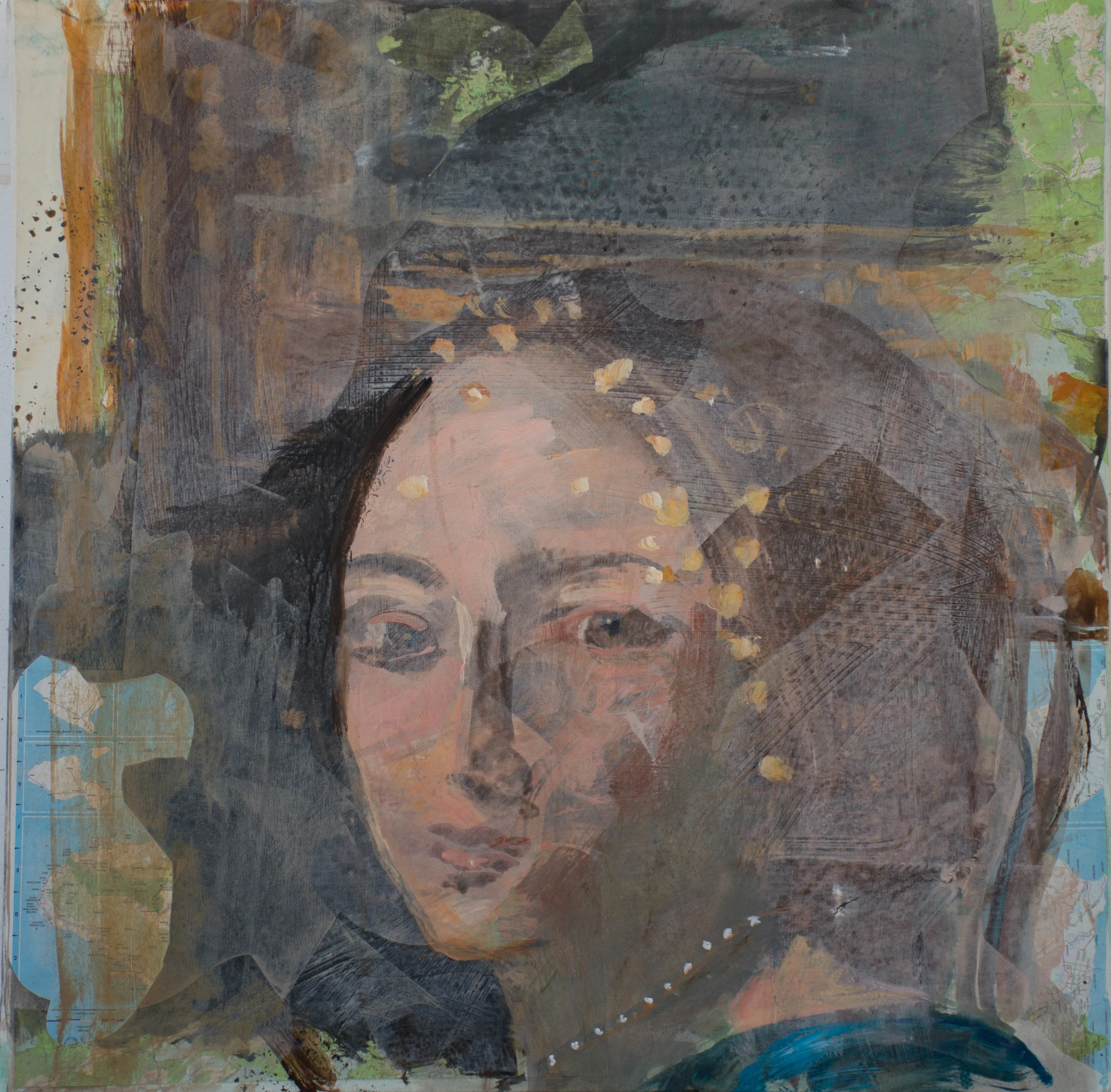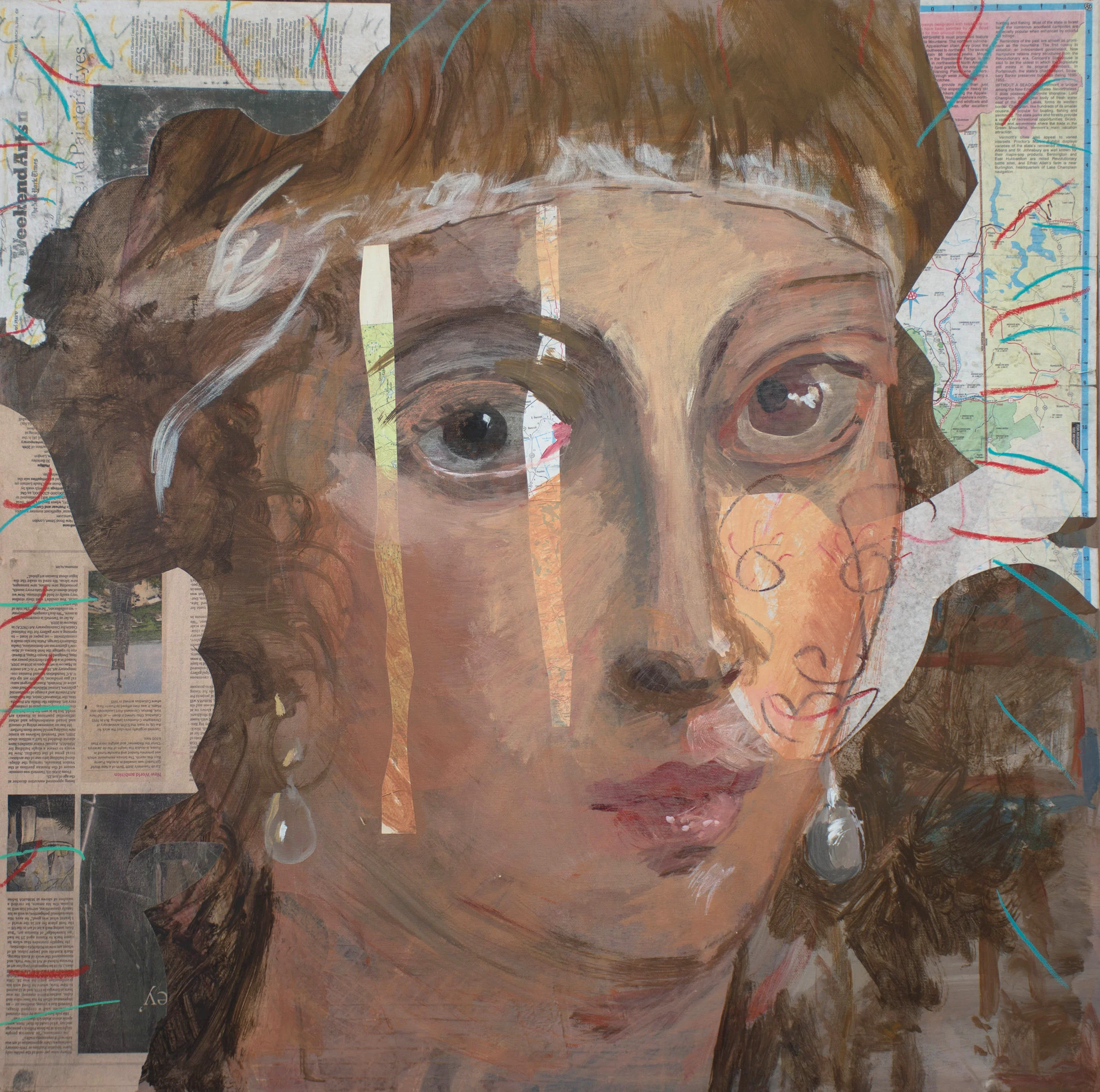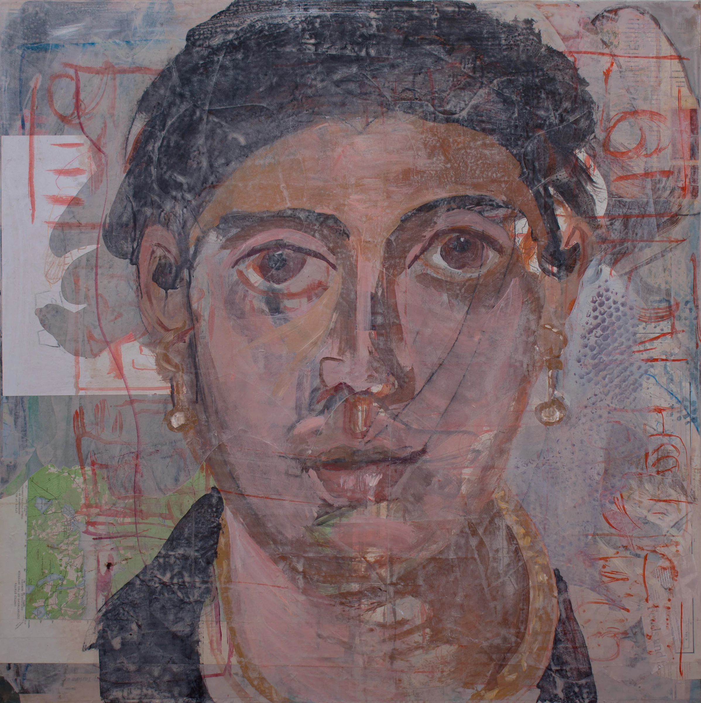 gaze paintings inspired by fayum portraits, 19th c. b&w photos of native americans. below right: portrait of mikela, 38x36” oil on linen, 2016.