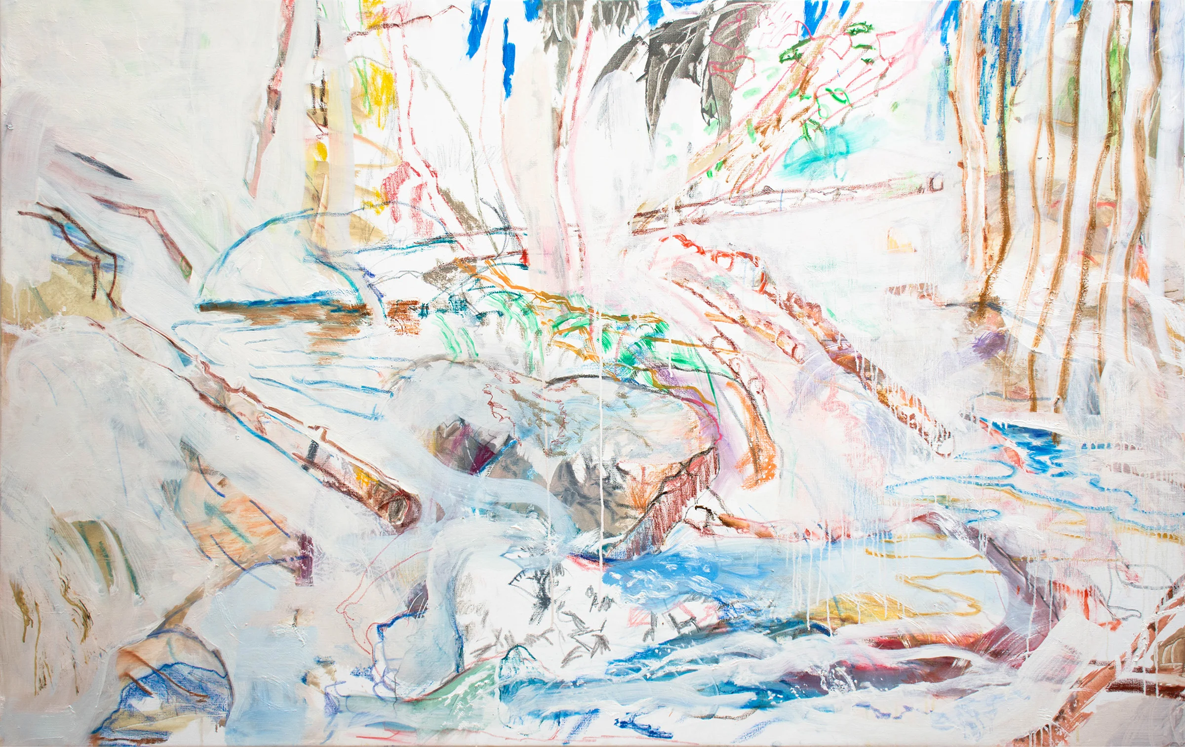 dp creek II, 42 x 66” oil, crayon & oil stick on linen, 2019 private collection, basalt, colorado