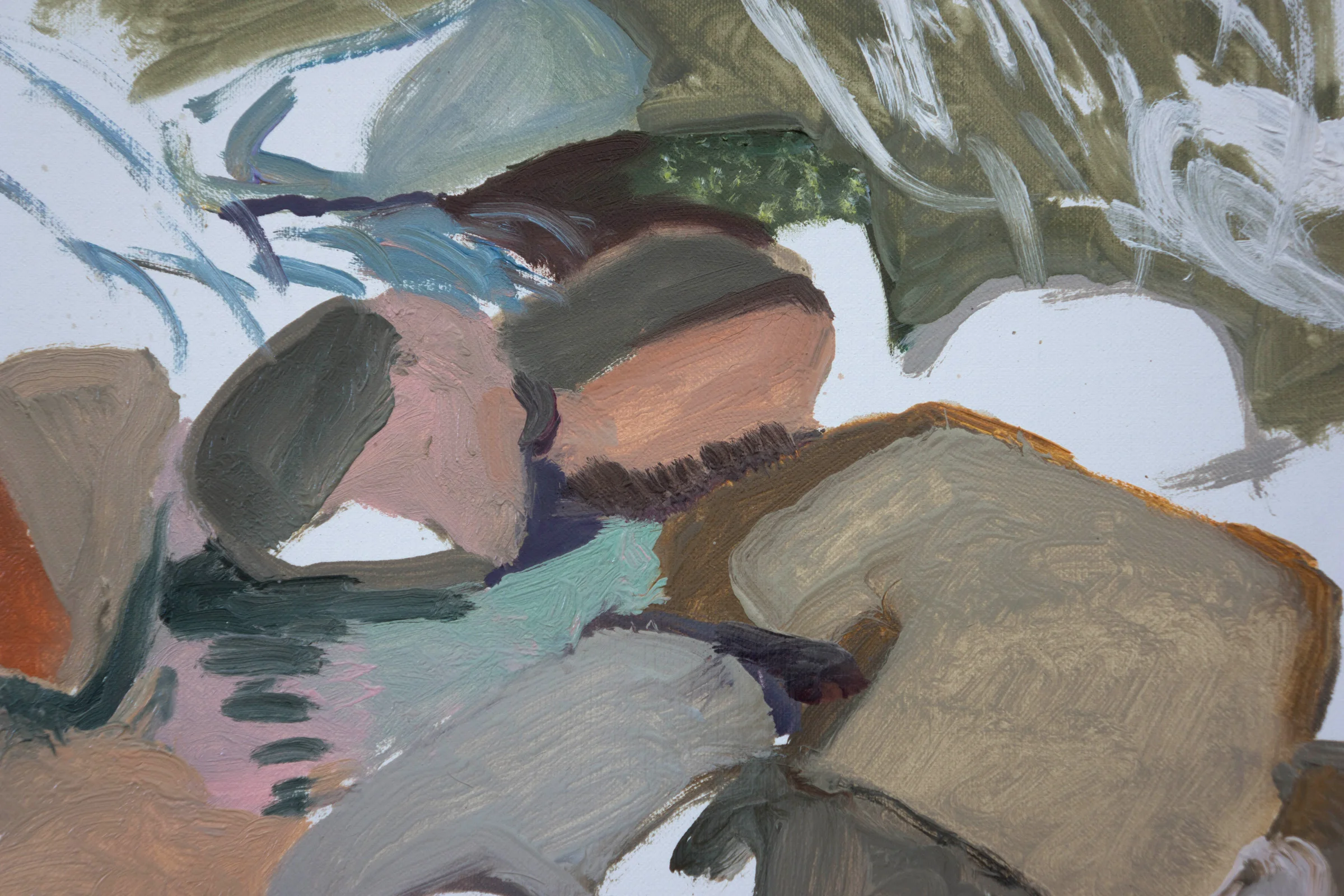 DETAIL of 10/7/14 plein air creek oil, showing the freshness and immediacy i’m able to attain using double primed portrait linen