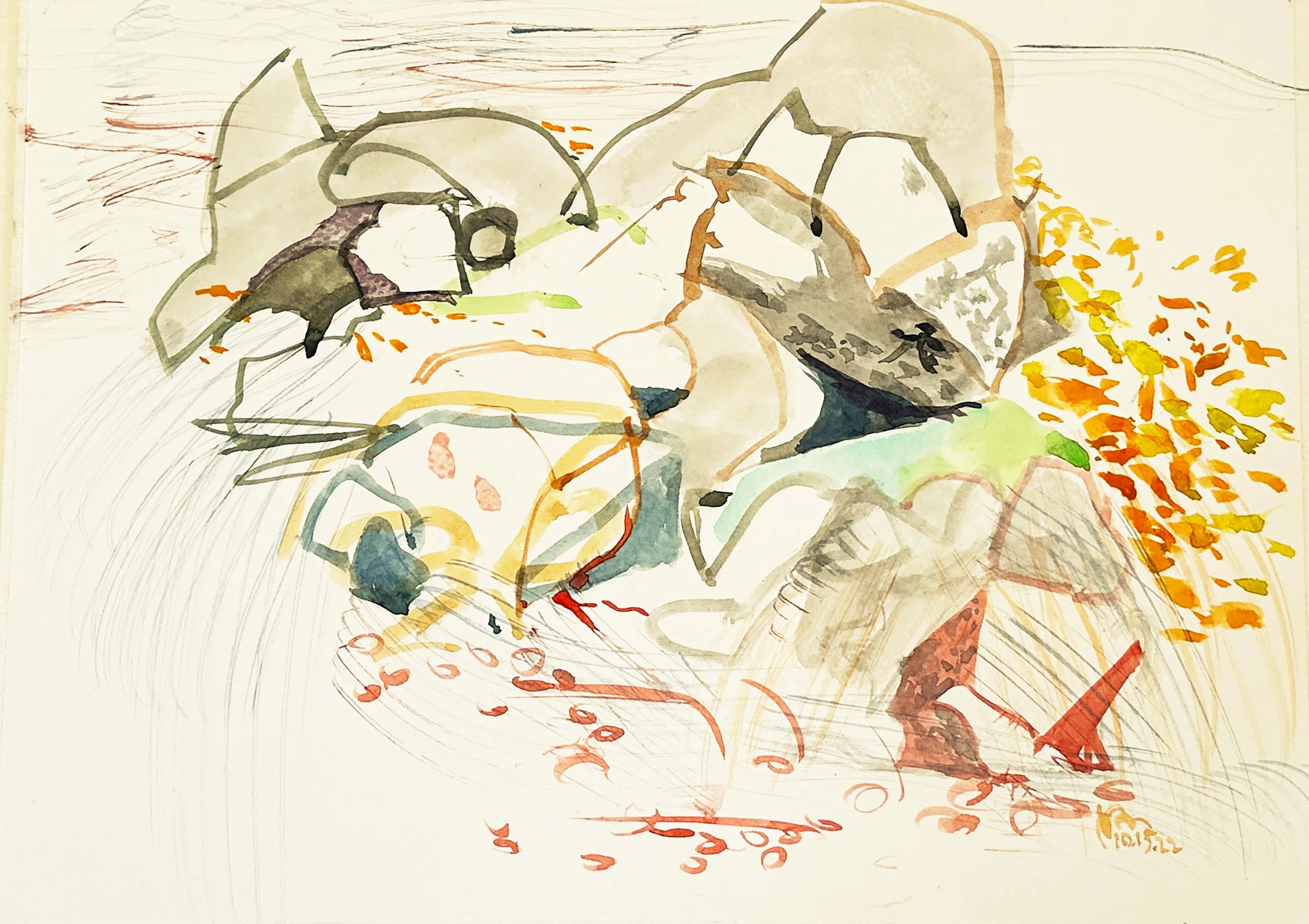10/15/22 plein air watercolor, 10x15.5”